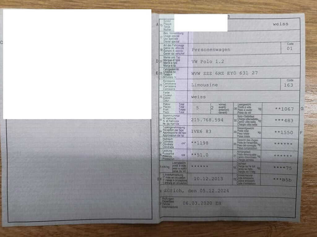 | Pneumatici | Achse 1: L: 6 mm, R: 6 mm, Dimension: 175/70 R14 Winter Achse 2: L: 6 mm, R: 6 mm, Dimension: 175/70 R14 Winter |