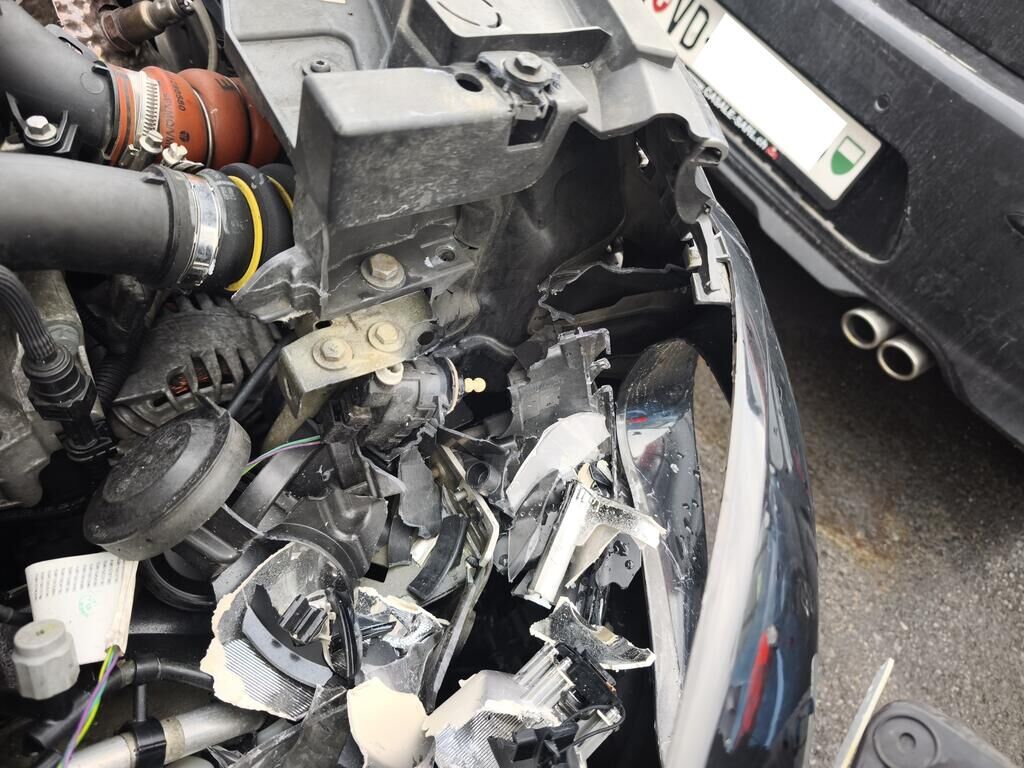 Capot, ailes avant droite et gauche, pare-chocs avant, renfort de pare-chocs, tôle frontale, longerons avant, phares avant gauche et droite, radiateurs, joue d’aile droite, porte avant droite, aile arrière droite, pare-chocs arrière droite, jantes avant et arrière droite, etc…