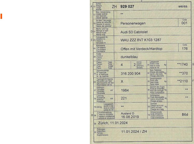 | Tipo veicolo / Costruzione / Porte | Automobile / Cabriolet / 0 |
