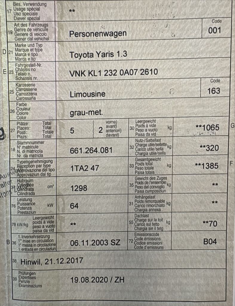 Keine technische Prüfung (Werkstatttest) vorgenommen