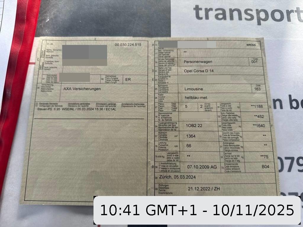Fahrzeugausweis Vorhanden