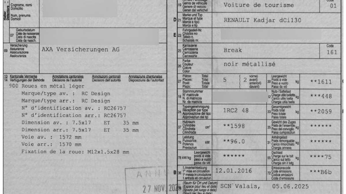 | Fahrzeugausweis | Vorhanden |