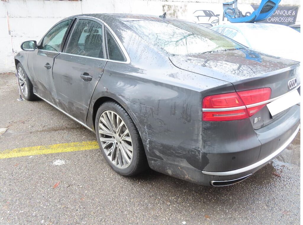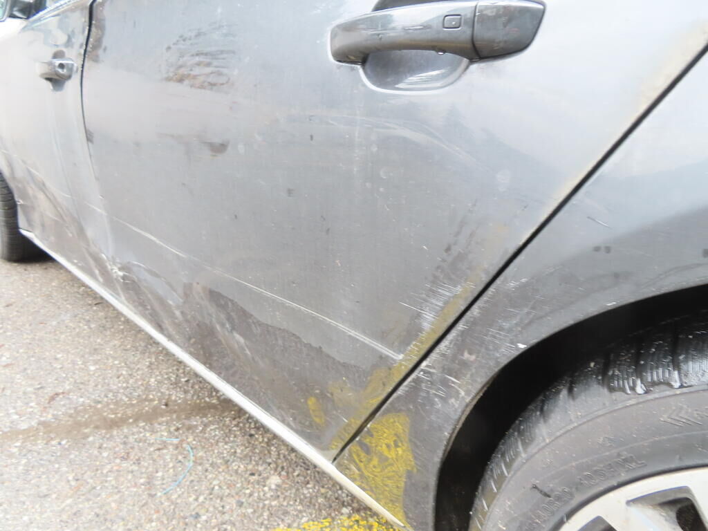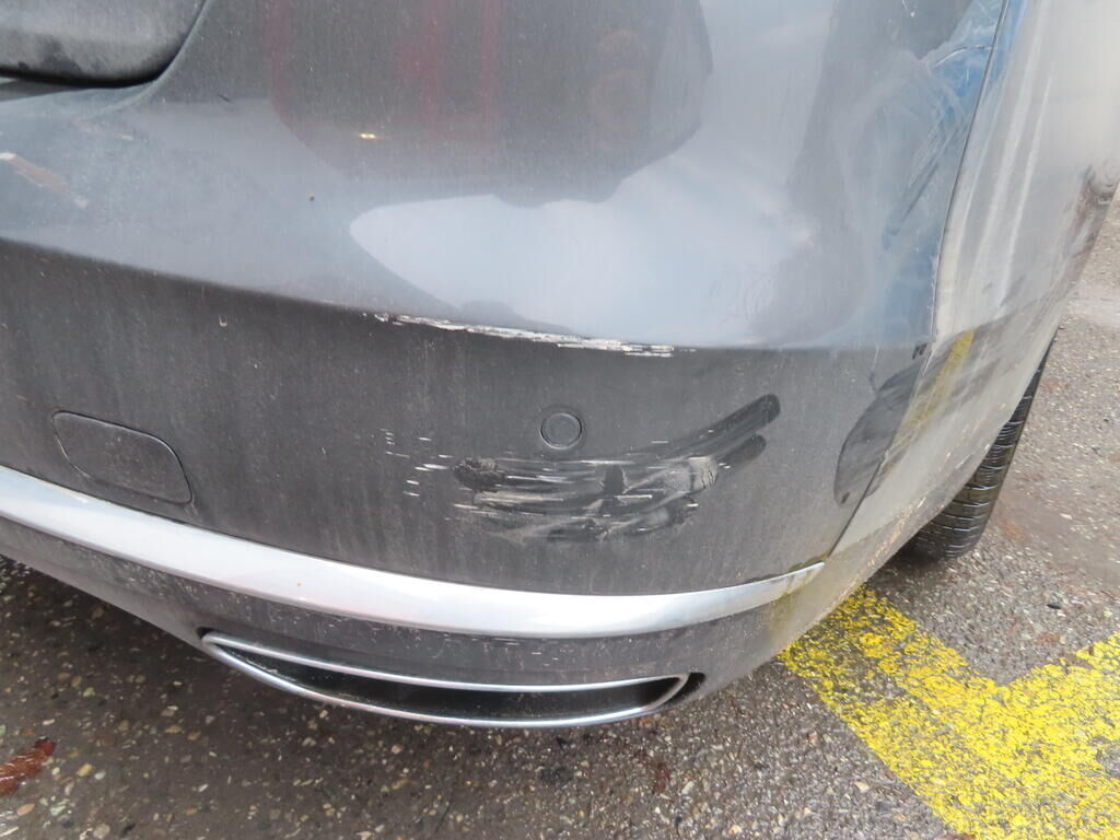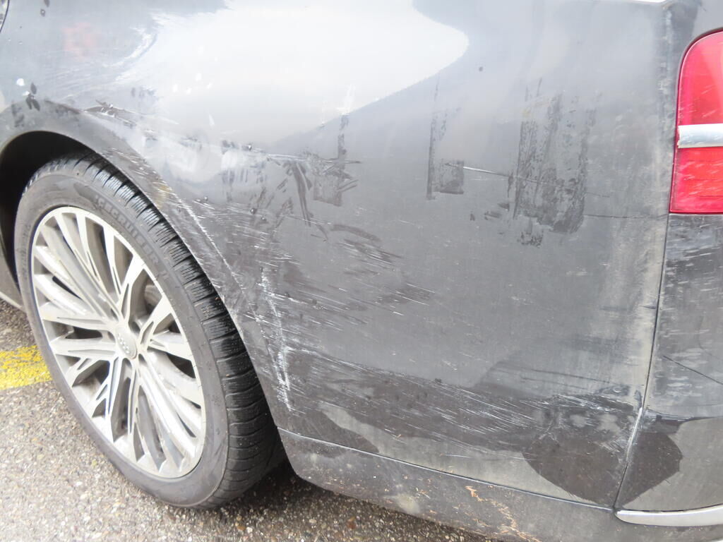 Pare-chocs avant, phare avant, aile avant, portes avant et arrière, aile arrière, montant, jantes avant et arrière; enfoncés et pliés.