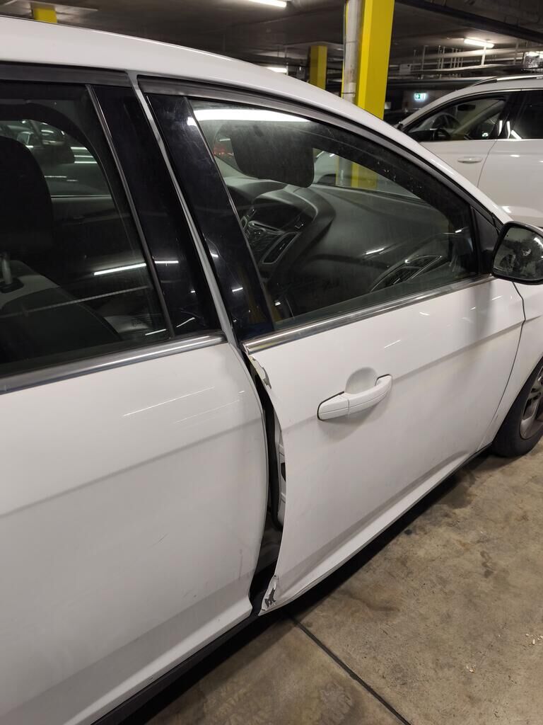 Beschädigt sind die rechte Fahrzeugseite, die Türe vorne rechts kann nicht mehr geschlossen werden!