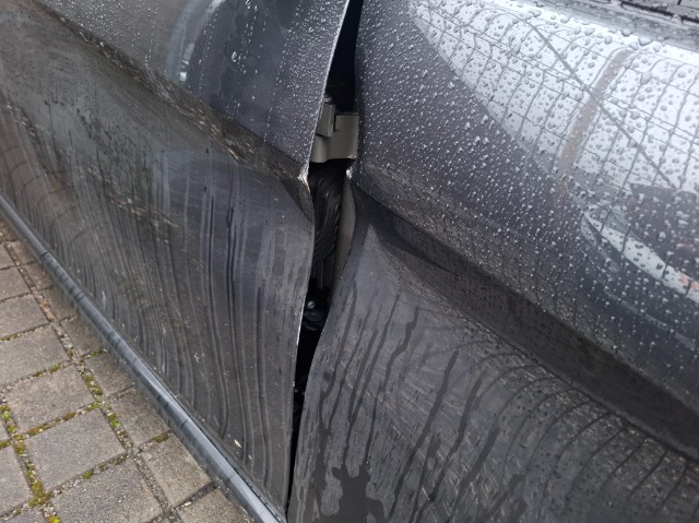 Beschädigungen Front Front eingedrückt. Front links eingedrückt. Front rechts eingedrückt. Frontblech/Maskenblech eingedrückt. Radhaus vorne rechts und links eingedrückt. Längsträger vorne rechts und links gestaucht. Fahrzeugvorbau verschoben. Fahrzeugvorbau nach rechts verschoben. Motor Achse Elektrik Innenraum Glas Weitere Beschädigungen |