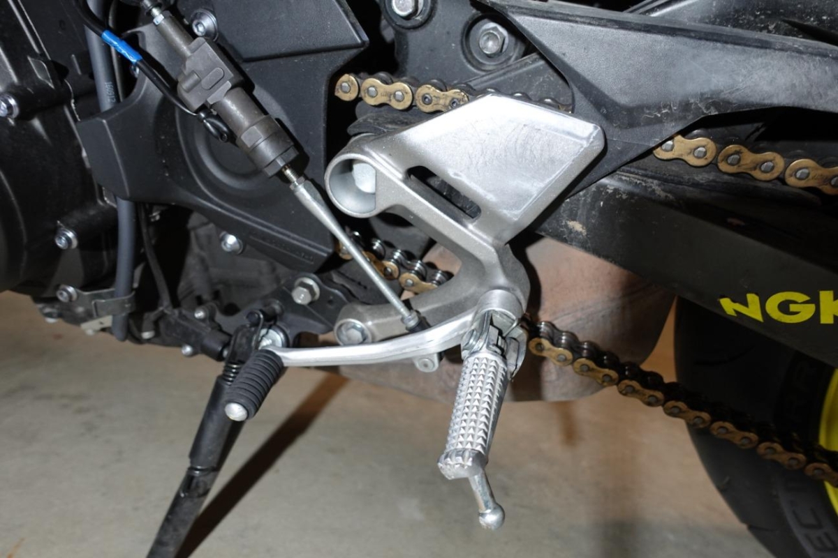 Aussenspiegel links, Fussraster links, Fussraster rechts, Gabelholm, Griff links, Kupplungsgehäuse, Lenker, Rahmen, Schwinge, Seite links, Seite rechts