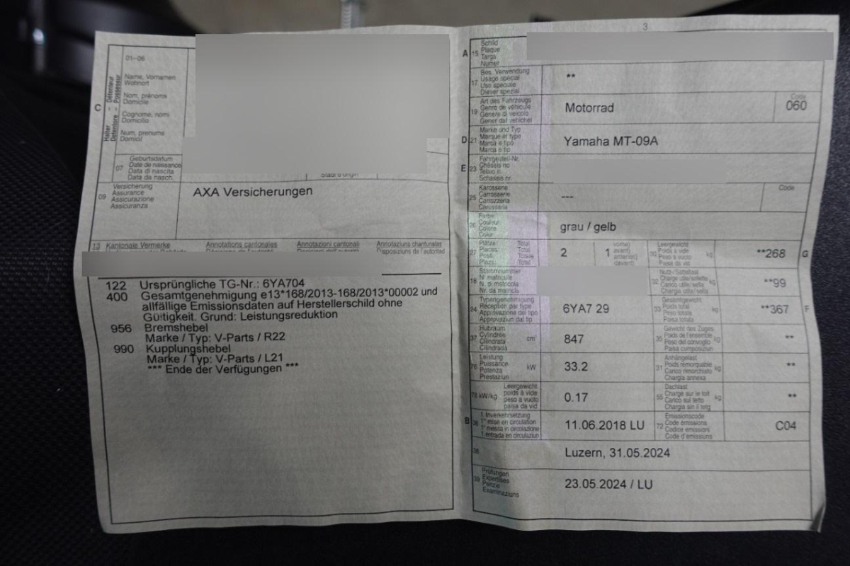 | Fahrzeugausweis | Vorhanden |