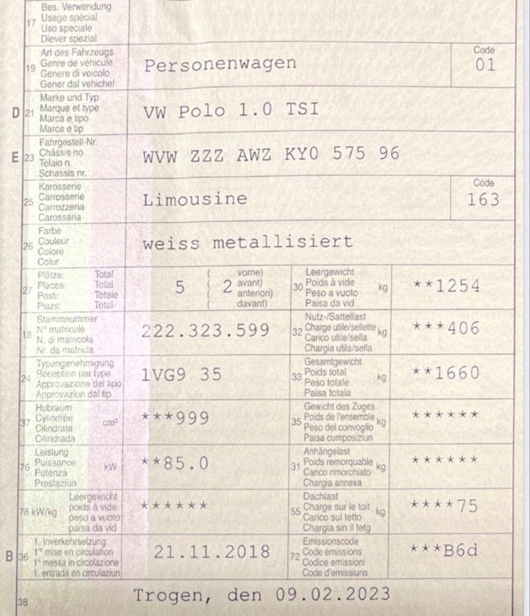 | Prima immatr. | 28.11.2018 |