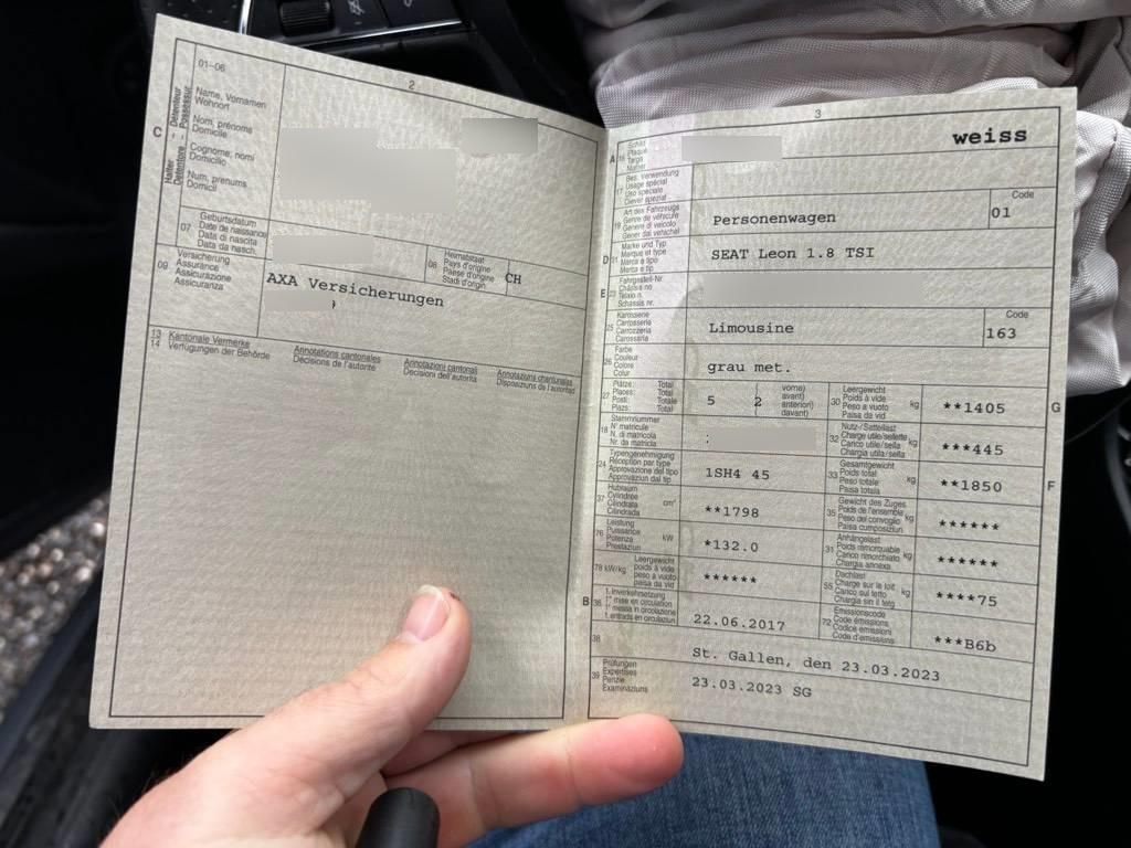 Aussenspiegel rechts und links beheizt, elektrisch verstell-/ und einklappbar, Seitenaufprall-Schutzsystem, Servolenkung, Elektrische Fensterheber hinten, Heckscheiben-Wisch-Waschanlage mit Intervall, Polster: Stoff-Ausstattung, Gurte Höhenverstellbar vorne, Aussenspiegel mit LED Blinker, Fahrwerk: Sportfahrwerk, Sportsitze vorne mit Lendenwirbelstütze, Abgedunkeltes Scheibenglas (ab B-Säule), Licht: Coming-home-Funktion, Gurtkontrolle, Reifenpannen-Set (Tire Kit), Schublade unter Fahrersitz, Tankdeckel-Entriegelung von innen, Kofferraumbeleuchtung, Assist: Tempomat, Elektrische Fensterheber vorne mit Komfortbetätigung und Einklemmschutz, Auspuffanlage mit 2 Endrohren, Media: USB-Anschluss, Gurtstraffer mit Gurtkraftbegrenzer vorne, Licht: Nebelschlussleuchte, Elektronische Parkbremse, Rücksitze geteilt abklappbar, Assist: Müdigkeitserkennung, Assist: Einparkhilfe hinten, Licht: LED Heckleuchten, SEAT Media System Color, Innenspiegel automatisch abblendbar, Make up-Spiegel rechts, Doppelscheinwerfer, Media: DAB+ (Digital Audio Broadcasting), Airbag: Beifahrerairbag deaktivierbar, Teppichfussmatten vorne und hinten, Airbag: Seitenairbag für Fahrer und Beifahrer, Airbag: Knie-Airbag für Fahrer, Airbag: Fahrer und Beifahrer Airbag, Media: Lautsprecher 8, Einstiegsleisten in Aluminium, ISOFIX Kindersitzvorrichtung, Assist: Multikollisionsbremse, Make up-Spiegel beleuchtet für Fahrer, Lenkrad: Ledermultifunktionslenkrad, Schalthebelknauf in Leder, Pollenfilter (Staubfilter), Licht: Bremslicht Drittes, Aussenspiegel und Türgriffe in Wagenfarbe, Leuchtweitenregulierung von innen, Fahrersitz mit Lendenwirbelstütze, Kopfstützen vorne höhenverstellbar, Licht- und Regensensor, Heckscheibenheizung, 5” Farbdisplay Touchscreen, Media: Mobiltelefon Freisprecheinrichtung Bluetooth, 12-Volt-Steckdose vorne, Licht: LED Nebelscheinwerfer, Räder: 4 Leichtmetallfelgen 17J mit Pneu, Licht: LED-Tagfahrlicht, Airbag: Window-Kopfairbags vorne und hinten, Lenkrad längs- und höhenverstellbar, Wegfahrsperre elektronisch, Sitze: Vordersitze höhenverstellbar, Wärmeschutzverglasung, XDS inkl. Berganfahrassistent, Bordcomputer und Display, Innenleuchten LED, Stop/Start-Technologie, Getriebe: 7-Gang-Sequentielle-Getriebe mit Automatikfunktion, ABS, EBD elektronische Bremskraftverteilung, Make up-Spiegel links, Bremsenergie-Rückgewinnung, Elektronische Traktionskontrolle (ASR/TCS), Aussentemperaturanzeige, Katalysator geregelt, Handschuhfach Beleuchtet, Licht: Halogenscheinwerfer, Klima: 2-Zonen-Klimaautomatik, Kopfstützen hinten (3), 3-Punkt-Sicherheitsgurte auf allen Plätzen, Zentralverriegelung mit Fernbedienung