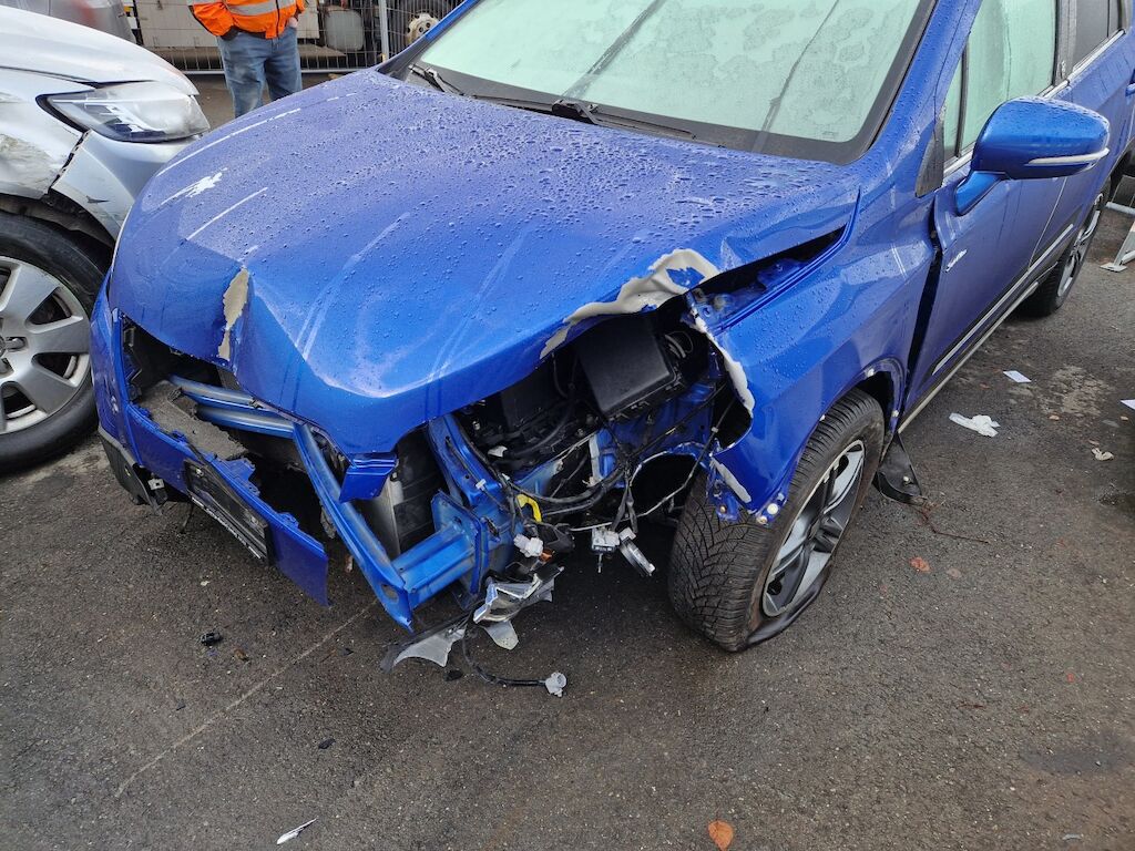 zone avant : enveloppe pare-choc avant arrachée, capot moteur enfoncé, renfort pare-choc avant , tôle frontale pliés, , condenseur et radiateur endommagl, aile avant gauche écrasée, joue d’aile gauche écrasée, mécanique avant gauche pliée et refoulée contre montant A, phare gauche et partie électrique avant gauche arraché, transmission avant gauche arrachée côté boîte. roulement entrée boite de vitesses endommagés, protection anti-bruit moteur endommagé, porte avant gauche marquée, aile avant droite marqué, voir détail calcul dans le dossier