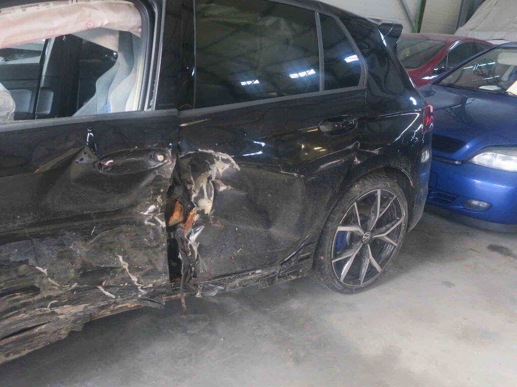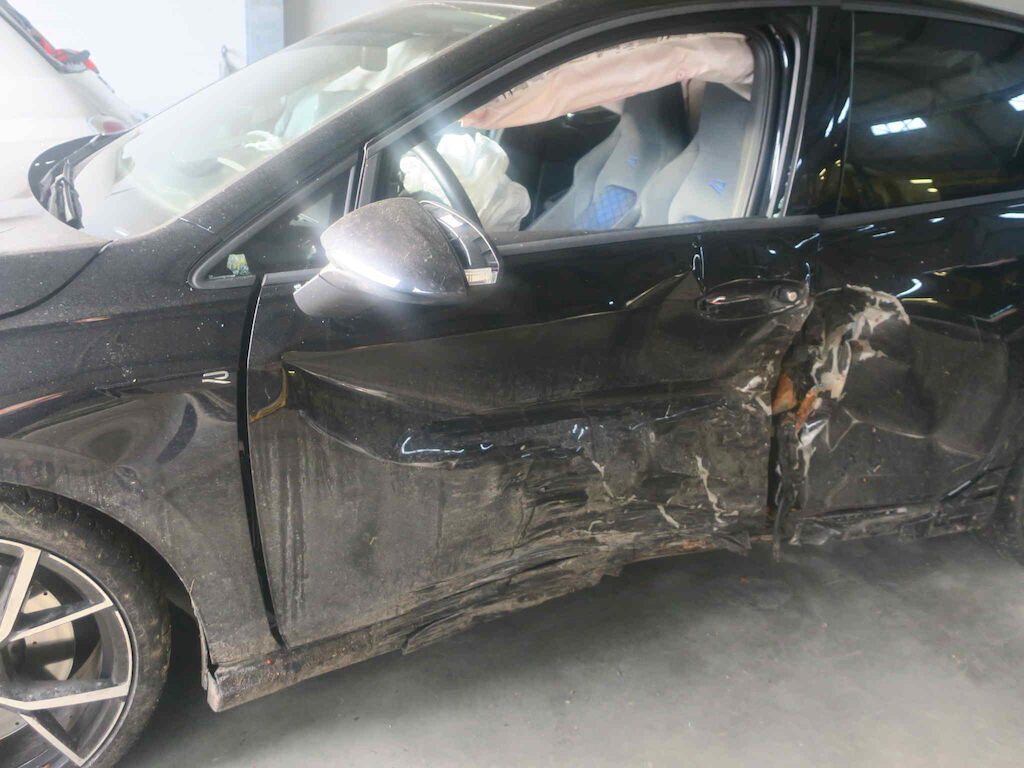 Seitenschaden links: Kotflügel, Rad vo, Türen li, B-Säule, Schweller, Bodenblech, Seitenwand hi, Rad hi wurden beschädigt. Fahrer- Beifahrer-Kopf und Seitenairbag inkl. Gurten und Gurtstraffen wurden ausgelöst.