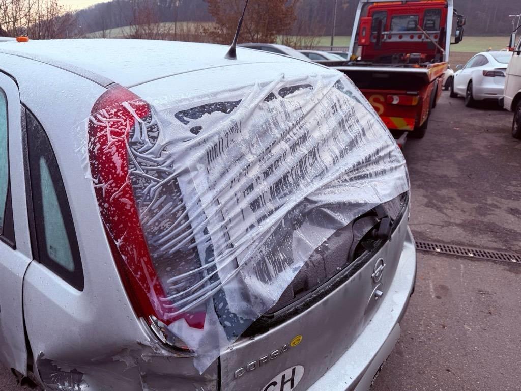 Achsträger, Auspuffanlage, Diverse Anbauteile, Diverse Gebrauchspuren, Heck, Heck links, Heck rechts, Heckblech, Heckdeckel, Heckscheibe, Hinterachse, Kabelstrang, Kofferraumboden, Längsträger hinten links, Rad hinten links, Radaufhängung hinten links, Radaufhängung hinten rechts, Radhaus hinten links, Rücklicht links, Rücklicht rechts, Schweller links, Seitenwand links, Stossstange hinten, Türe hinten links, Wagenboden
