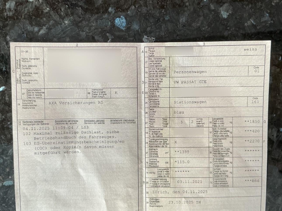 | Fahrzeugausweis | Vorhanden |