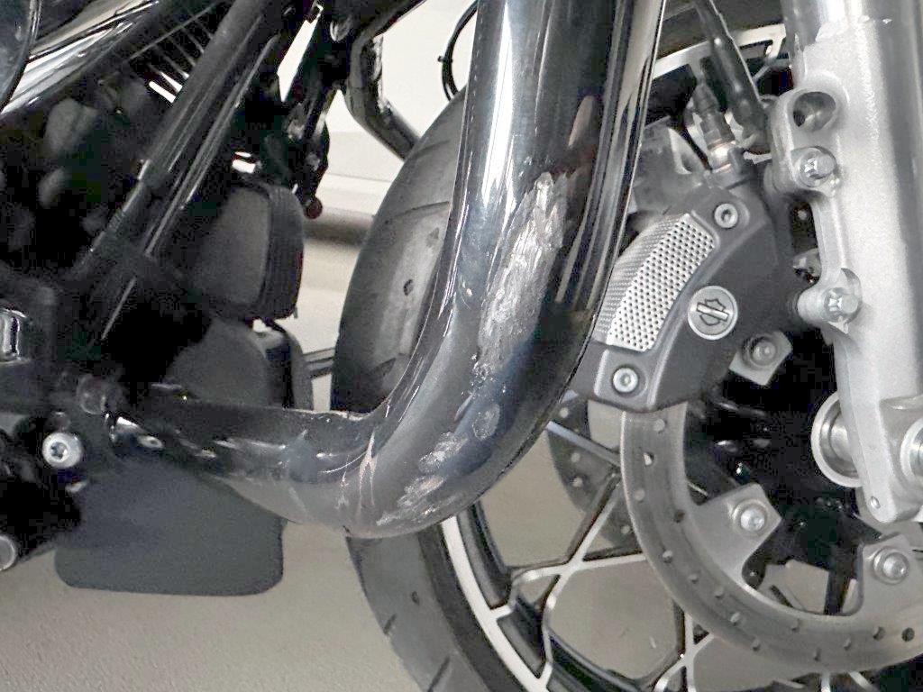 Auspufftopf, Aussenspiegel links, Aussenspiegel rechts, Fussraster rechts, Gabelholm, Griff rechts, Kühler, Lenker, Rad vorne, Scheinwerfer, Schutzblech vorne, Seite rechts, Seitenkoffer rechts, Verschalungen rechts, Windschutzscheibe
