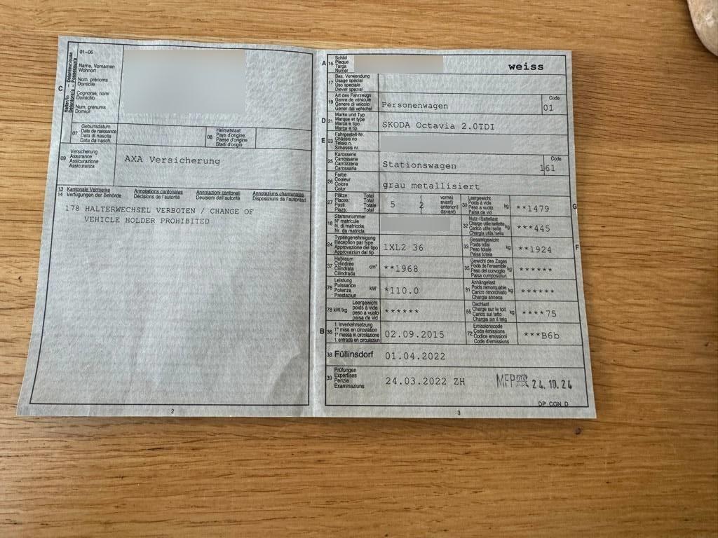 | Fahrzeugausweis | Vorhanden |