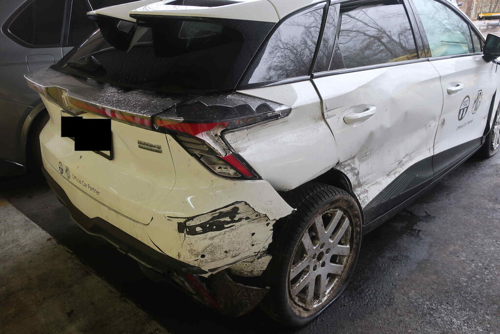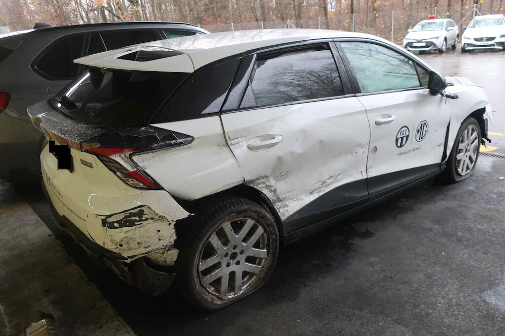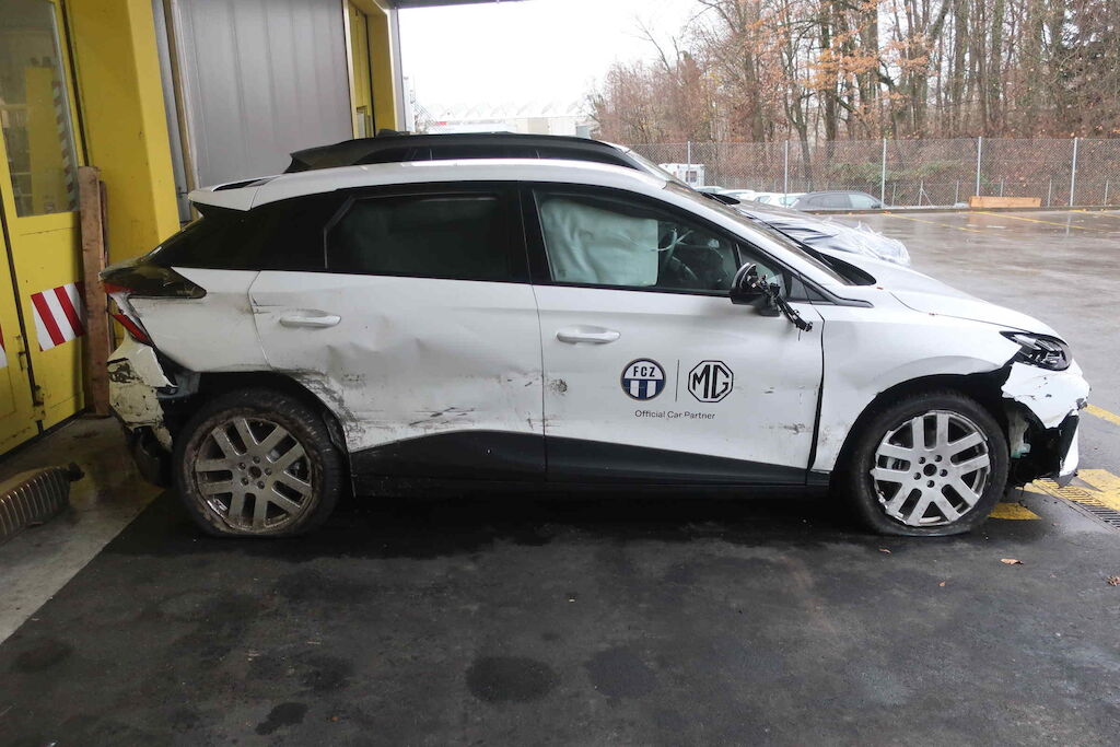 Stossfänger vorne,Scheinwerfer rechts, Kotflügel rechts, Rad vorne rechts, Aufhängung vorne rechts, Beifahrertüre, Türen hinten rechts, Seitenwand rechts, Innenradhaus rechts, Aufhängung hinten rechts, Stossfänger hinten