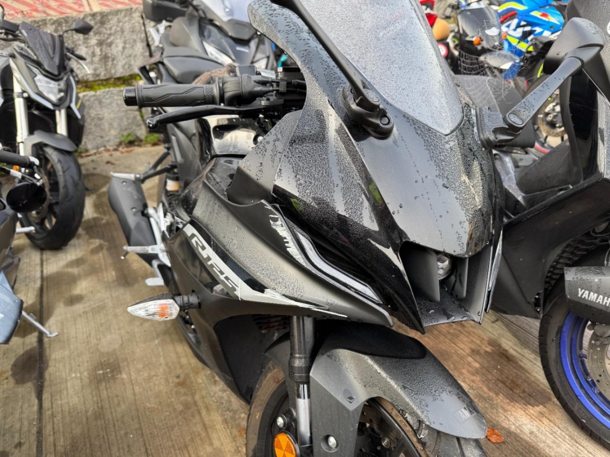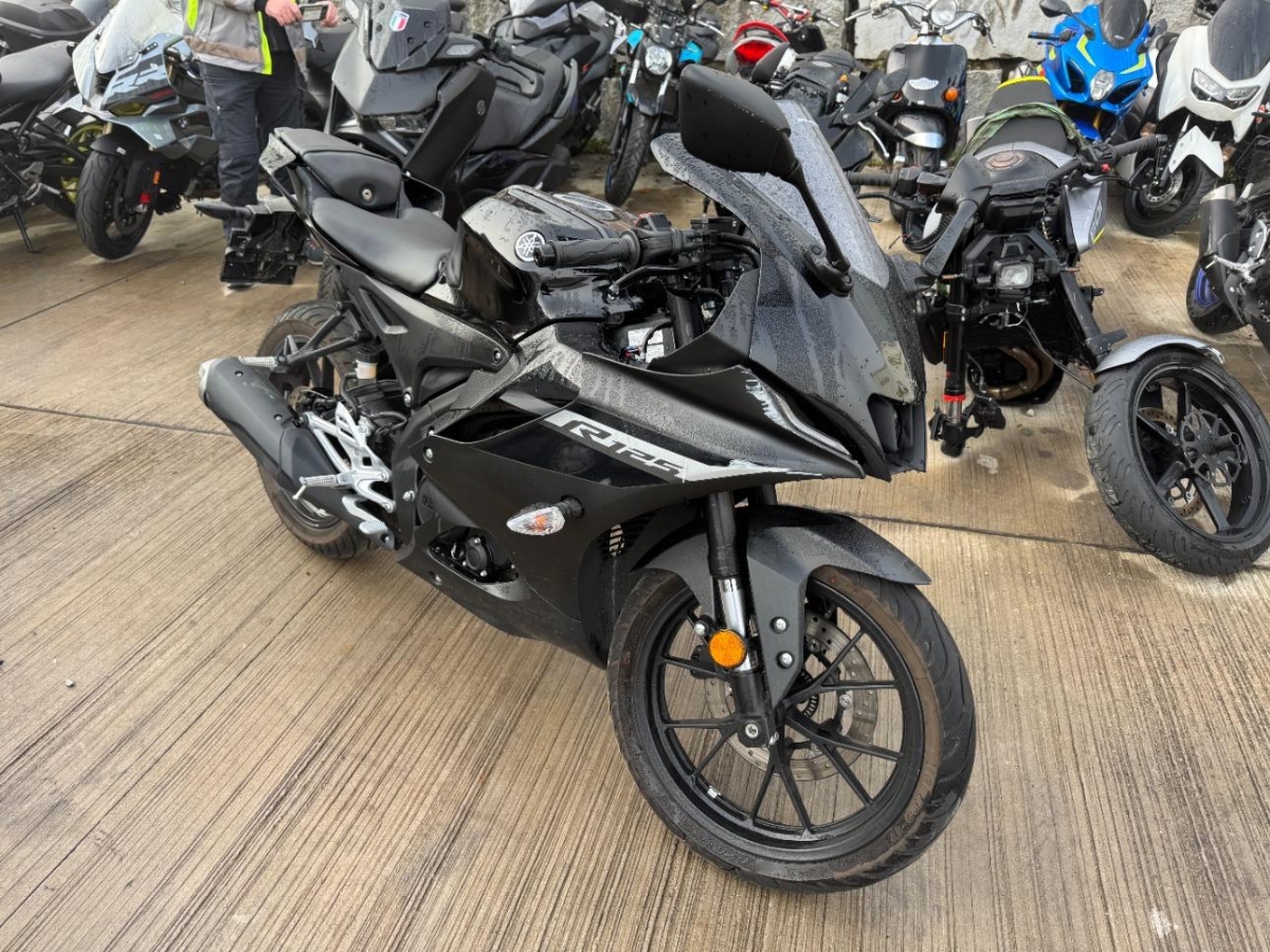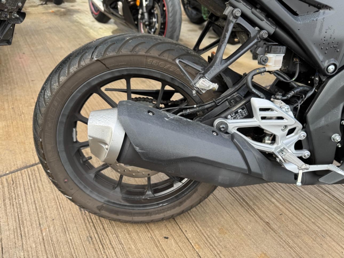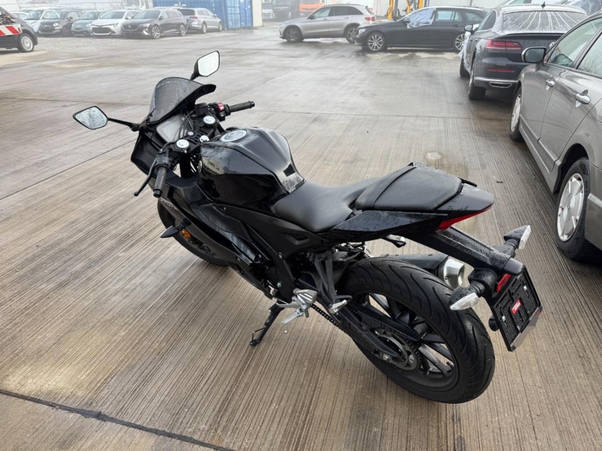 Antrieb, Armaturen, Auspuffkollektor, Aussenspiegel links, Diverse Anbauteile, Fussraster links, Gabelholm, Getriebe, Griff links, Heck, Kühler, Motorgehäuse, Rad hinten, Rad vorne, Rahmen, Rücklicht, Scheinwerfer, Schutzblech hinten, Schwinge, Sitz, Tank, Verschalungen links