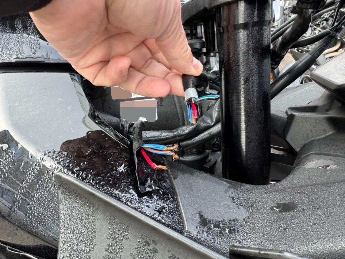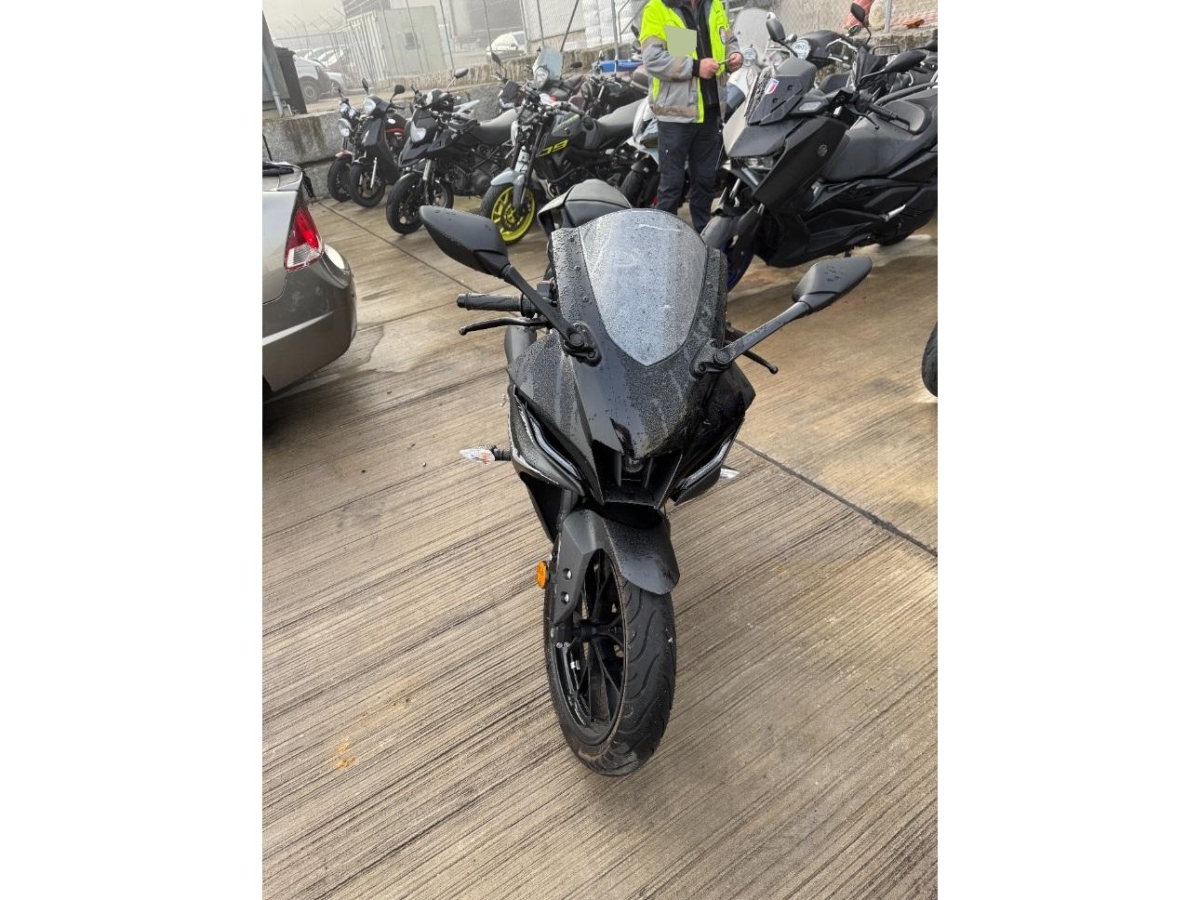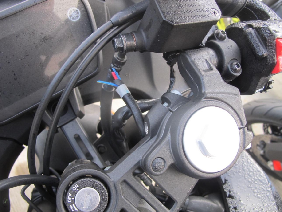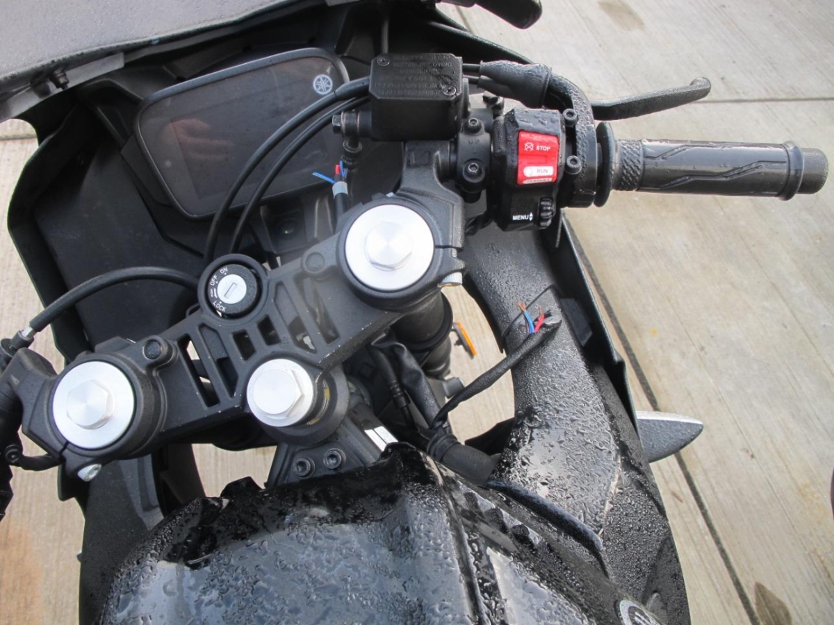 Auspufftopf, Aussenspiegel rechts, Fussraster rechts, Griff rechts, Kabelstrang, Kupplungsgehäuse, Lenker, Lenkschloss, Seite rechts, Verschalungen rechts, Verschalungen vorne, Zündschloss
