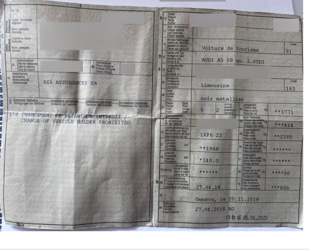 | Fahrzeugausweis | Vorhanden |