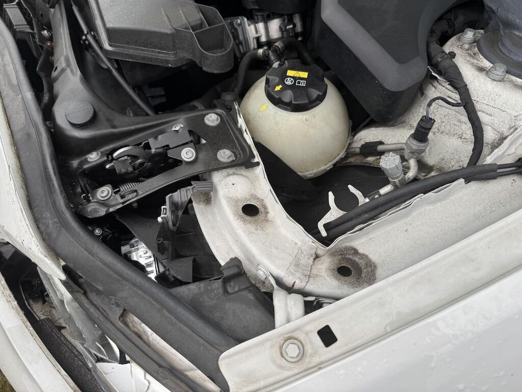 Beide Kotflügel, Motorhaube und Frontrahmen deformiert. Beide Scheinwerfer, alle Kühler mit Klimakondensator und Motoranbauteilen beschädigt.