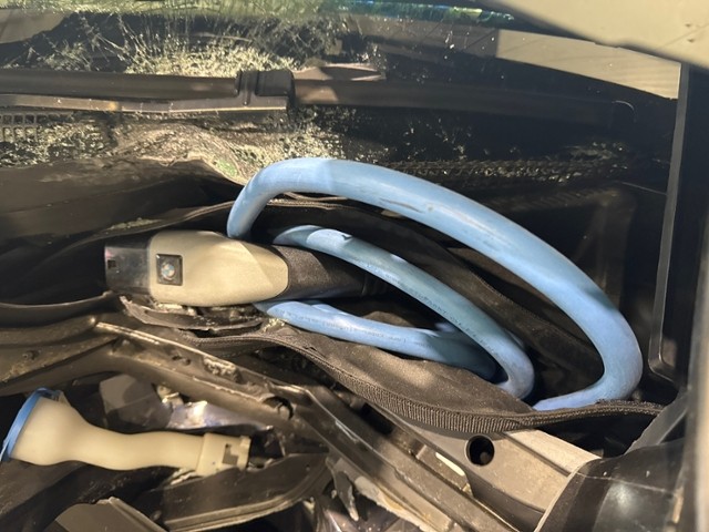 Front Längsträger vorne rechts und links gestaucht. Achse Innenraum Hochvoltfahrzeug |