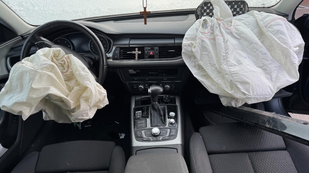 Achsträger, Airbag ausgelöst, Antrieb, Antriebswelle, Armaturenbrett, Federbein vorne links, Federbein vorne rechts, Front, Front links, Front rechts, Frontblech, Getriebe, Gurtstraffer ausgelöst, Klimakühler, Kotflügel links, Kotflügel rechts, Kühler, Kühlgitter, Ladeluftkühler, Lenkung, Motorhaube, Rad hinten links, Rad hinten rechts, Rad vorne links, Rad vorne rechts, Radaufhängung vorne links, Radaufhängung vorne rechts, Scheinwerfer links, Scheinwerfer rechts, Schlossträger, Schweller rechts, Stosstange vorne, Türe vorne links, Türe vorne rechts, Vorderachse, Wagenboden
