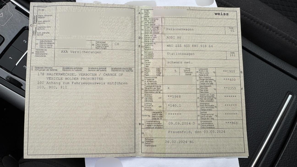 | Fahrzeugausweis | Vorhanden |