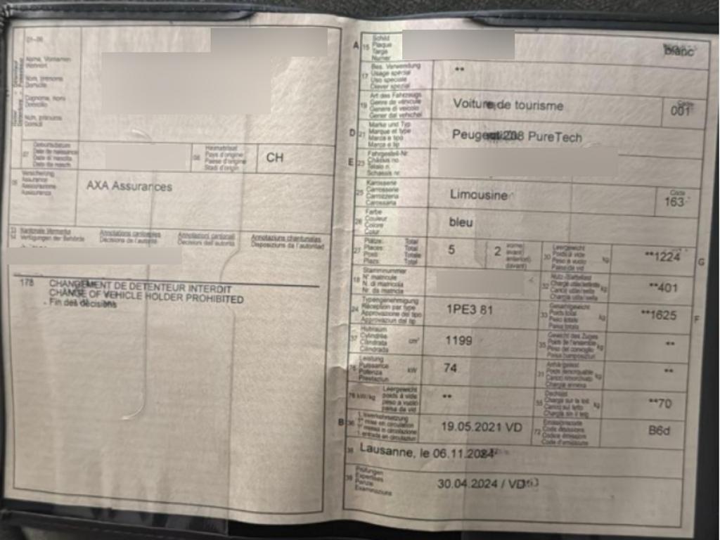 Hohe Konsole mit integrierter Armlehne, 2 USB-Anschlüsse hinten und Fahrmodus-Wahlschalter, Licht: EcoLED-Scheinwerfer mit LED-Tagfahrleuchten, Netze an der Rückenlehne der Vordersitze, Peugeot i-Cockpit mit Head-up-Display und Farbmatrik 3,5”, Elektronische Stabilitätskontrolle (ESP) mit Traktionskontrolle (ASR), ABS (Antiblockiersystem) EBV (Elektronischer Bremskraftverteiler), Notbremsassistent, Dynamische Stabilitätskontrolle (DSC) und Anhängerstabilitätssystem, Getriebe: 8-Stufen-Automat sequentiell, Höhenverstellbare Kopfstützen an Fahrer- und Beifahrersitz sowie Rücksitzen, Fensterheber vorn und hinten elektrisch mit Impulssteuerung und Einklemmschutz, Räder: Reifenreparaturset: 12-Volt-Kompressor, Flasche mit Dichtmittel, Abschleppöse, zwei Radkeile, Kurbel für elektrische Parkbremse, Assist: Erweitere Verkehrszeichenerkennung, Elektrische Servolenkung, Licht: Nebelschlussleuchte, Bordcomputer, Media: Digitaler Radioempfang DAB, Bluetooth® mit kapazitivem 7″-Touchscreen HD 4 Lautsprecher vorn + 2 hinten, 4 USB-Anschlüsse, Chromfreie Auspuffendblenden, Akustische Windschutzscheibe, Räder: 16-Zoll-Alufelgen SOHO Diamantierte Grau Storm, Aussenspiegel in Wagenfarbe, Heckscheibenheizung, Airbag: Seitenairbag für Fahrer und Beifahrer, Lenkrad: Lenkrad in Höhe und Weite verstellbar, Heckschürze Schwarz glänzend, Drehzahlmesser, Sicherheitsgurte hinten, mit progressiven Kraftbegrenzern, Sitze: Fahrersitz höhenverstellbar, Licht: Full LED-Rückleuchten, Räder: Indirekte Unterdruckerkennung, Lenkrad: Kompaktlederlenkrad mit verchromtem Löwen und integrierten Bedienelementen, Heckscheibenwischer, Kühlergrill mit Chromapplikationen, Wegfahrsperre elektronisch, Innenbeleuchtung: Deckenleuchten mit 3 Lampen (1 Lampe und 2 Leseleuchten) + Kofferraum, Innenraum und Dachhimmel Grau, Schlüsselloses Startsystem, Getönte hintere Seitenfenster und Heckscheibe, Assist: Visuelle und akustische Einparkhilfe hinten, Sicherheitsgurte vorne mit pyrotechnischer Haspel mit Gurtstraffern und Kraftbegrenzern, Polster: Stoff-/Kunstleder-Ausstattung, Befestigung für zwei Kindersitze nach ISOFIX-Standard auf den Rücksitzen, inklusive Top Tether, Lackierung: Uni-Lackierung, Katalysator geregelt, Airbag: Window-Kopfairbags, Dekor: Armaturenbrett Slush mit Dekor in Carbonoptik und schwarzer Hochglanzstange mit Chromzierleis, Licht: Drittes Bremslicht, Airbag: Fahrer und Beifahrer, Automatische Verriegelung aller Türen beim Fahren, Elektrische Parkbremse mit Berganfahrhilfe und automatischer Klemmung, Klima: Automatische Einzonen-Klimaanlage, Garantie: 3 Jahre oder 80’000 km – 2 Jahre Km unbegrenzt und im 3. Jahr bis 80’000 Km begrenzt – 12 Jahre Korrosionsschutzgarantie – 3 Jahre Lackgarantie – Garantie auf die Batterie für 8 Jahre / 160’000 Km, für 70% der Ladekapazität (e-208), 3-Tasten-Fernbedienung + Standardschlüssel, Aussenspiegel elektrisch verstell-, beheiz- und anklappbar mit Zugangsbeleuchtung, Assist: Geschwindigkeitsregler/-begrenzer, Licht: Automatischer Start des Abblendlichts, Automatisches Einschalten der Frontscheibenwischer, Innenspiegel automatisch abblendbar, Sitze: Versenkbare Rücksitzbank (Reihe 2) 2/3 – 1/3, 2 USB-Ladeanschlüsse im Fond, Mirror Screen Funktion (Apple Carplay/Android Auto/ MirrorLink), Pausenwarner