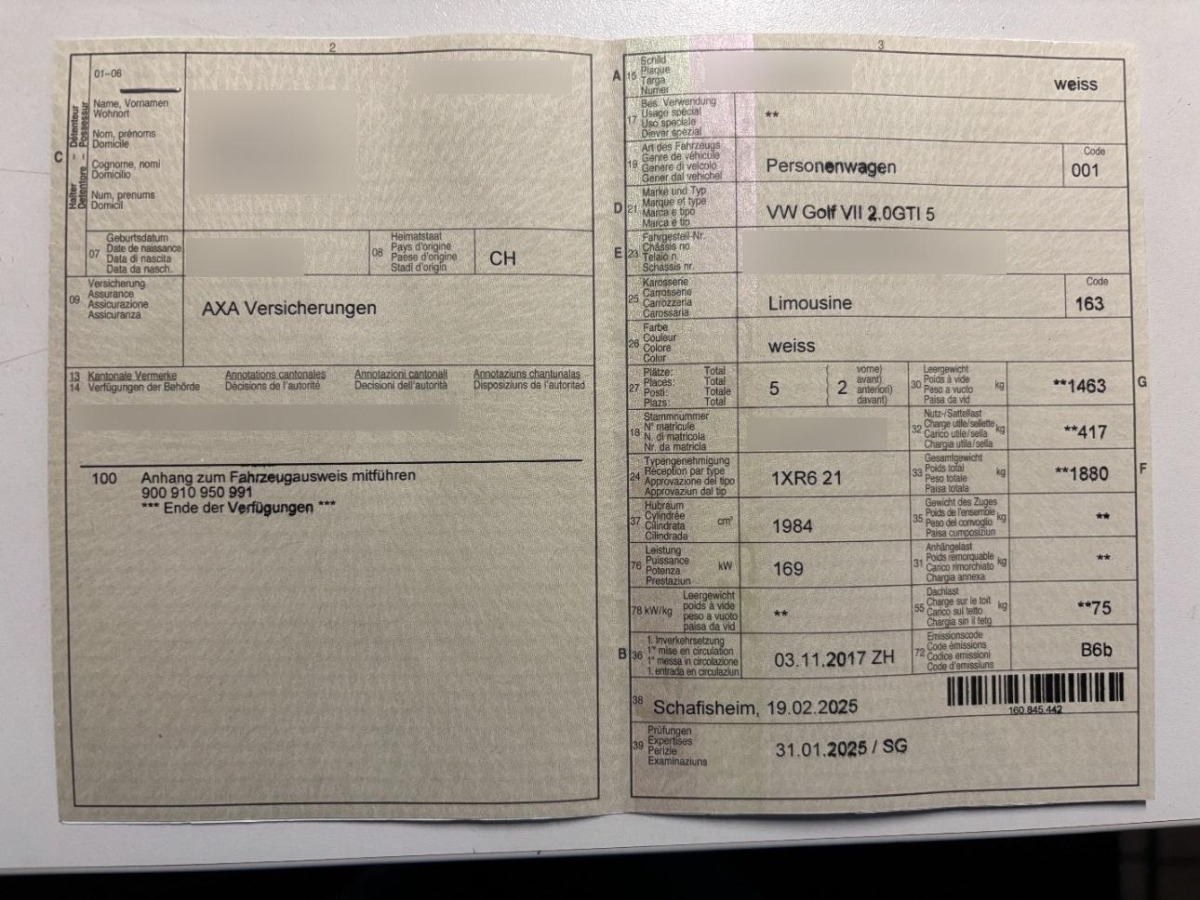 Türgriffe aussen in Wagenfarbe, Wegfahrsperre elektronisch, Make up-Spiegel links, Auto-Hold-Funktion, Nebelscheinwerfer mit Abbiegelicht, Elektrische Fensterheber vorne + hinten, Heckscheibenheizung, Wartungsintervall-Anzeige, Sitze: Vordersitze mit höheneinstellung, Heckscheiben-Wisch-/Waschanlage mit, Instrumentenbeleuchtung, regelbar, Dachspoiler in Wagenfarbe, Teppichfussmatten vorne und hinten, Leichtmetallräder (Brooklyn) 7.5x17J, Innenspiegel automatisch abblendbar, Elektronische Differentialsperre (XDS), Kopfstützen hinten abklappbar, Sportfahrwerk mit Tieferlegung, 3 Kopfstützen hinten, Antiblockiersystem (ABS), Assist: Müdigkeitserkennung, Fahrprofilauswahl, Aussenspiegel in Wagenfarbe, Warndreieck, Lackierung: Sonderlackierung, Kofferraumbeleuchtung, Aussenspiegel rechts und links beheizt und elektrisch verstellbar, asphärisch gewölbtes Spiegelglas, Scheibenwaschdüsen beheizt, Lenkrad: Lenkrad längs- und höhenverstellbar, Airbag: Window-Kopfairbags, Regensensor für Scheibenwischer vorne, Progressivlenkung, LED Heckleuchten, dunkelrot, Durchlademöglichkeit in der Rücksitzbank inkl. Mittelarmlehne hinten, 4 Scheibenbremsen, Ambientebeleuchtung ( blau ), 3-Punkt-Sicherheitsgurte auf allen Plätzen, Licht: Fahrlichtautomatik, Leseleuchten vorne, Warnleuchte für Wischwasserstand, LED Scheinwerfer mit Kurvenfahrlicht und LED Tagfahrlicht, Tageskilometerzähler, Knie-Airbag für Fahrer, Blinker in Aussenspiegel, Laderaumabdeckung, Wärmeschutzverglasung, Airbag: Airbag Beifahrer deaktivierbar, Ladeboden variabel, Stossstangen in Wagenfarbe, Mittelarmlehne vorne mit Ablagefach, Licht: Coming-home-Funktion, Licht: Drittes Bremslicht, Scheibenwischer vorne mit Intervall, Assist: Automatische Distanzregelung ACC bis 210 km/h – Umfeldbeobachtung Front-Assist mit City-Notbremsfunktion, Cupholder vorne und hinten, Sportsitze vorne, Polster: Stoff-Ausstattung, Abgedunkelte Seiten- und Heckscheibe, Höhenverstellbare Gurten vorne, Lichtwarnsummer, ISOFIX Kindersitzvorrichtung, Klima: Pollenfilter (Staubfilter), Aktive Kopfstützen, Security & Service, Klima: Klimatisierungsautomatik Climatronic, Ausstiegsleuchten in den Türen, Elektronisches Stabilitäts-Programm ESP, Getriebe: Sequentielles 6-Gang-Getriebe DSG mit Automatikfunktion, Wagenheber und Radschraubenschlüssel, Mittelkonsole mit Ablagefach, Aussentemperaturanzeige, Radiosystem Composition Media, Ablagen in den Türen, 2 Schlüssel mit Fernbedienung, Multikollisionsbremse, Bremsenergie-Rückgewinnung, Tankdeckel-Entriegelung von innen, Fussstütze und Pedalkappen in Edelstahl, Media: DAB+ (Digital Audio Broadcasting), Servolenkung geschwindigkeitsabhängig, Zentralverriegelung mit Fernbedienung, Multifunktionsanzeige Premium, Innenlicht-Abschaltverzögerung, Räder: Reifenkontrollanzeige, Befestigungsösen im Laderaum, Make up-Spiegel rechts, Gangempfehlung, Gurtkontrolle, Elektronische Parkbremse, Stopp-/Start-System, Licht: Nebelschlussleuchte, Bremsassistent (BAS), Wassertemperaturanzeige, Radiovorbereitung, Antenne und Entstörung, Leder-Multifunktionslenkrad DSG im 3-Speichen-Design inkl. Schaltwippen, Reifenreparatur-Set mit Kompressor, Beleuchtetes Handschuhfach, Gurtstraffer vorne, Sitze: Kreuzstützen für Vordersitze verstellbar, Seitenairbag für Fahrer und Beifahrer, 12 Volt-Steckdose im Laderaum, Sitze: Rücksitzlehne geteilt abklappbar, Halogenscheinwerfer, Bremssättel rot lackiert, Katalysator geregelt, Antriebsschlupfregelung (ASR), Park Distance Control vorne und hinten, Vordersitze beheizbar, Grün getönte Scheiben, Airbag: Airbag Fahrer und Beifahrer, Drehzahlmesser