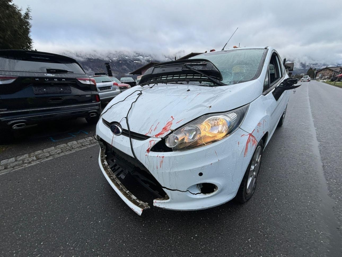 Aussenspiegel links, Front, Front links, Front rechts, Frontscheibe, Gurtstraffer ausgelöst, Klimakühler, Kotflügel links, Kühler, Kühlgitter, Motorhaube, Rad vorne links, Radaufhängung vorne links, Scheinwerfer links, Schlossträger, Stosstange vorne, Türe vorne links