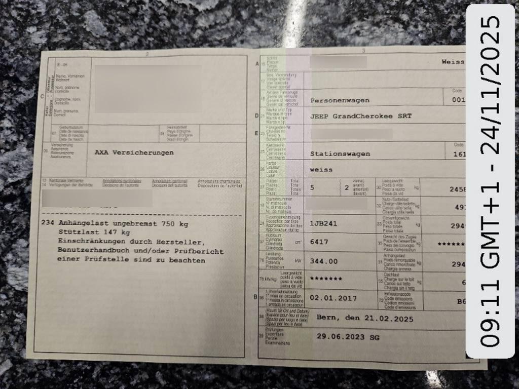 Zentralverriegelung mit Fernbedienung, Licht: LED-Tagfahrlicht, Vorbereitung für Anhängevorrichtung, Aussentemperaturanzeige, Antriebsschlupfregelung (ASR), Klima: 2-Zonen-Klimaautomatik, ISOFIX Kindersitzvorrichtung, Allradantrieb permanent, Subwoofer, Beifahrersitz elektrisch verstellbar, Aussenspiegel in Wagenfarbe, Mittelarmlehne hinten mit 2 Getränkehaltern, Beide Make up-Spiegel beleuchtet, Schienensystem im Laderaum, Uconnect Multimediasystem: Uconnect Freisprecheinrichtung, Navigation inkl. Touchscreen,DAB Radio/CD, SD- Kartenansteckplatz, Ipod, MP3, AUX, USB, Aussenspiegel rechts und links beheizt, elektrisch verstell-/ und einklappbar mit Memory, automatisch abblendend, Fahrersitz elektrisch verstellbar, Totwinkel-Assistent, Elektronisches Stabilitäts-Programm (ESP) mit Anhängerstabilisierung, Räder: Reifendruck-Kontrollanzeige, Sitze: Rücksitzlehne geteilt abklappbar, Vordersitze belüftet, Katalysator geregelt, Heckspoiler in Wagenfarbe, Licht: Nebelscheinwerfer, Bi-Xenon-Scheinwerfer inkl. adaptivem Kurvenlicht, 4 Leichtmetallfelgen 20J mit Pneu, Einstiegsschienen vorne beleuchtet, Reifen mit Notlaufeigenschaft, Aktive Kopfstützen, Ladekantenschutz in Chrom, Airbag: Window-Kopfairbags, Licht: Nebelschlussleuchte, Airbag: Knie-Airbag für Fahrer, Airbag: Airbag Fahrer und Beifahrer, Innenspiegel automatisch abblendbar, Lackierung: Uni-Lackierung, Antiblockiersystem (ABS), Abschliessbares Handschuhfach, Wegfahrsperre elektronisch, Bremsassistent (BAS), 19 Lautsprecher, Fahrer-Informationssystem, Fahrersitz mit Memoryfunktion, Sportauspuffanlage, Keyless Entry / -Start, Lenkrad: elektrisch längs- und höhen- verstellbar, Steckdose, Cupholder vorne, Berganfahrassistent, Elektrische Fensterheber vorne + hinten, Elektrisch einstellbare Lendenwirbelstütze für Vordersitze, Assist: Parkassistent vorne und hinten inkl. Rückfahrkamera, Elektrisches Panorama-Glasdach plus 1 Glasdach hinten, Regensensor für Scheibenwischer vorne, Heckklappe elektrisch, Laderaumabdeckung, Bordcomputer, Airbag: Seitenairbag für Fahrer und Beifahrer, Kühlergrill verchromt, Überroll-Schutzsystem, Steckdose im Kofferraum, Getriebe: 8-Stufen-Automat sequentiell, Dunkel getönte Scheiben, Diebstahlwarnanlage mit Innenraum- überwachung, Gurtkontrolle, Abblendlichtausschaltverzögerung ‘Follow me home’, Adaptive Geschwindigkeitsregelung mit Forward Collision Warning Plus, Assist: Spurhalteassistent Lane Assist, Assist: Tempomat, Berganfahrhilfe (Hill Launch Assist), Brembo-Bremsanlage, CD-Laufwerk, Dachhimmel in Alcantara, Dachreling in Chrom, Fernlichtassistent Smart Beam, Harman/Kardon-Soundsystem, Lenkrad beheizbar, Mittelarmlehne aus Leder, Parkassistent vorne und hinten erweitert, Polster: Leder-Ausstattung, Sportlederlenkrad mit Audiobedienung, Stabilitäts- und Traktionskontrolle (STC), Teppichfussmatten Premium mit Logo, Traktionskontrolle (TCS-Traction Conrol System), Türgriffe aussen verchromt, USB-Anschluss, Vordersitze heizbar