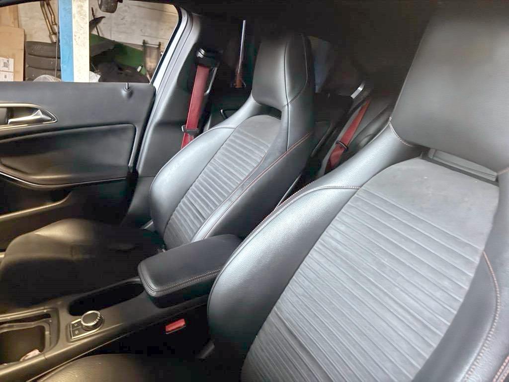 Katalysator geregelt, Aussentemperaturanzeige, Kindersicherung an den hinteren Türen, Licht: Fahrlichtassistent (automatisches Fahrlicht), Polster:Polsterung Ledernachbildung ARTICO / Microfaser DINAMICA, Airbag: Window-Kopfairbags, Antiblockiersystem (ABS), Sitze:ISOFIX-Befestigungspunkte für Kindersitz an den äusseren Rücksitzen, Steckdose 12-Volt- vorne, Räder:AMG-Leichtmetallräder im 5-Speichen-Design, 18J, Licht:Adaptives Bremslicht, Auspuffanlage mit 2 Endrohren, Bremsassistent (BAS), Paket: AMG Styling-Paket, Lackierung: Uni-Lackierung, Heckscheibenwischer, Audio 20 Radio CD/MP3 mit Farbdisplay, Bluetooth-Schnittstelle mit Freisprech- funktion, Aux-in-Anschluss und Telefon- tastatur, Bremsscheiben vorne gelocht, Geräusch- und Wärmeschutzverglasung, 12-Volt-Steckdose hinten, Lenkrad:Multifunktions-Sportlenkrad in Leder,unten abgeflacht, Elektrische Fensterheber vorne + hinten, Stossstangen in Wagenfarbe, Fahrwerk:AMG Sportfahrwerk, Airbag: Airbag Fahrer und Beifahrer, Radiovorbereitung, Antenne, Entstörung und 6 LS, Wegfahrsperre elektronisch, Reifendruckverlust-Warnsystem, Befestigungsösen im Laderaum, Crashaktive Notbeleuchtung, Bremssättel rot lackiert, Fahrwerk:Sportfahrwerk mit Tieferlegung, USB-Anschluss, Dekor: Bordkantenzierstab in Chrom, Assist: Tempomat mit variabler Geschwindigkeitsbegrenzung SPEEDTRONIC, Armauflage vorne, verschiebbar, Zentralverriegelung mit Fernbedienung und automatischer Türverriegelung, Aussenspiegel in Wagenfarbe, Interieur mit roten Kontrastziernähten, Make up-Spiegel rechts, Scheibenwischer vorne mit Intervall, Diamantgrill, Höhenverstellbare Gurten vorne, Sitzbelegungserkennung für Beifahrersitz, Airbag: Knie-Airbag für Fahrer, Nichtraucherausführung, Heckscheibenheizung, Wartungsintervall-Anzeige, Sitze: 3-Punkt-Sicherheitsgurte auf allen Plätzen, Airbag: Seitenairbag für Fahrer und Beifahrer, Assist: ATTENTION ASSIST (Aufmerksamkeitsassistent), Fahrersitz höhenverstellbar, Türgriffe aussen in Wagenfarbe, Getriebe: Sequentielles 7-Gang-Getriebe mit Automatikfunktion, Beleuchtetes Handschuhfach, Dekor: Zierelemente Carbonoptik, Crash-Sensor, Ablagen in den Türen, Licht: Nebelschlussleuchte, Assist:COLLISION PREVENTION ASSIST (Kollisionswarnung), Kontrollanzeige für Lampenausfall, Sitze:Gurtstraffer vorne, Dekor:Türmittelfelder in Mikrofaser DINAMICA, Bremsbelagverschleiss, Sportpedalanlage, Tagfahrlicht, Antriebsschlupfregelung (ASR), Parameterlenkung mit geschwindigkeits- abhängiger Lenkkraftunterstützung, Make up-Spiegel links, Klimaanlage manuell, mit Pollenfilter, Sitze:Sitzkomfort-Paket, Frontscheibe Verbundglas, Drittes Bremslicht LED, Gurtkontrolle, ECO Start-Stopp-Funktion, Elektronisches Stabilitäts-Programm (ESP), Sitze:Sportsitze vorne, Sitze: Rücksitzlehne geteilt abklappbar, Multifunktionsanzeige, Reiserechner, Licht: LED Blinker im Aussenspiegel, Einstiegsleisten in Aluminium, Lenkrad längs- und höhenverstellbar, Reifenreparatur-Set (Tire Fit), Dekor: Dachhimmel schwarz, Assist:ADAPTIVE BRAKE mit HOLD-Funktion und Berganfahrhilfe, Teppichfussmatten mit Logo
