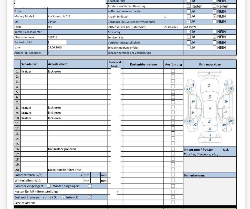 | Keine Gewähr auf die Angaben der Sonder- und Serienausstattung / keine mechanische Prüfung. Fahrzeug wurde unzerlegt expertisiert / keine Haftung für allfällige, nach Demontage bekanntwerdenden Mängel. Fahrzeugbereifung und Ausstattung gemäss Fotos / Fahrzeugkauf auf eigenes Risiko ab Platz ohne Nachwährschaft. – Div. Kratzer und Dellen am gesamten Fahrzeug. – Div. Kratzer an den Felgen. – Letzter Serviceeintrag 23.07.2025 bei 75’577 km |