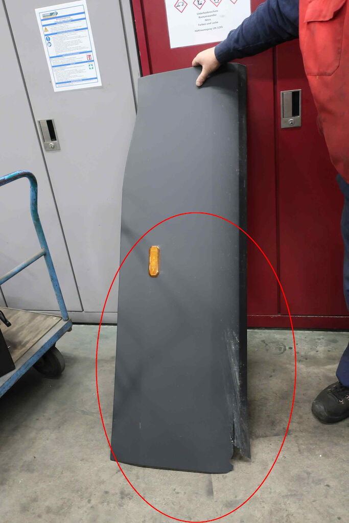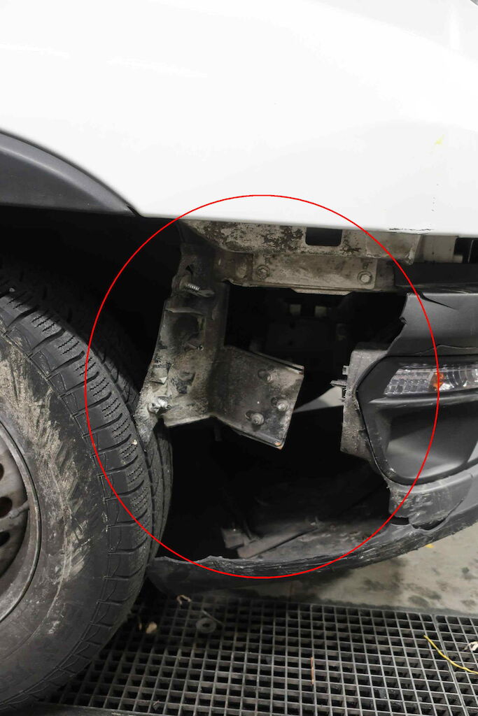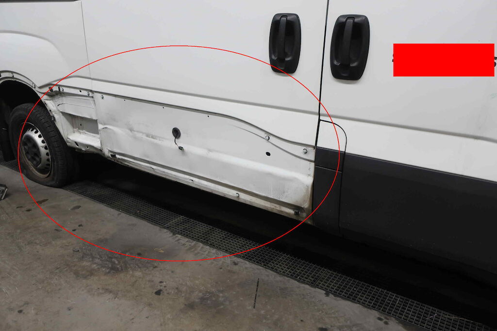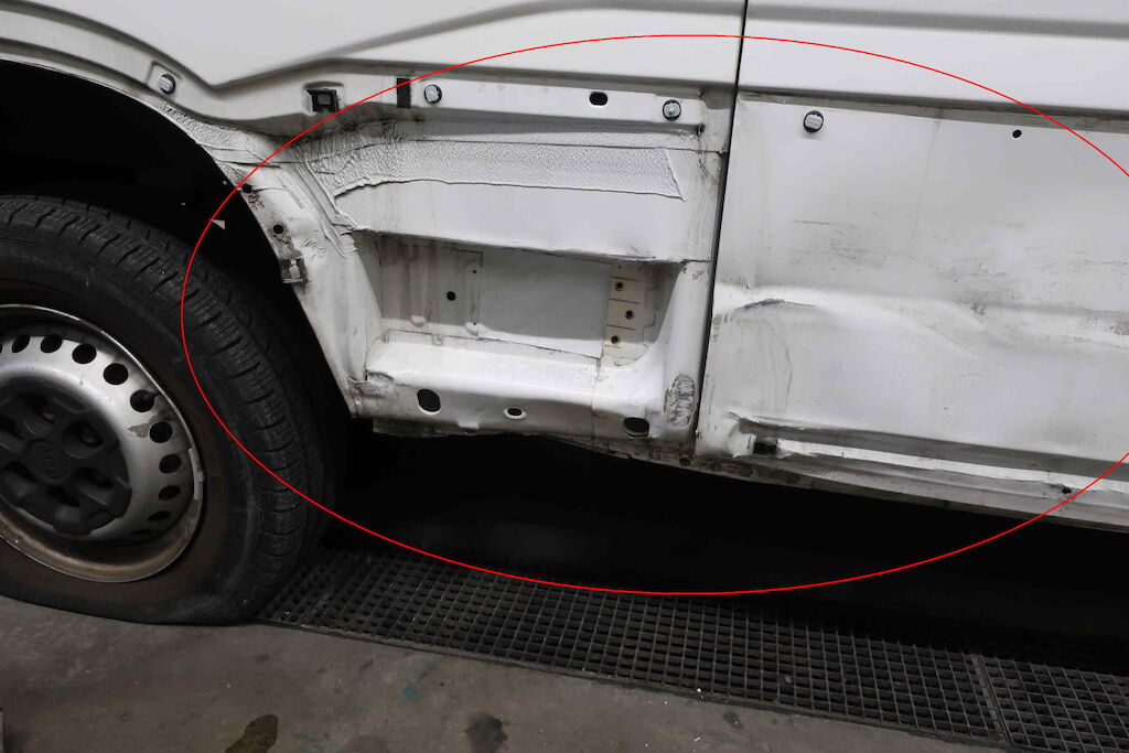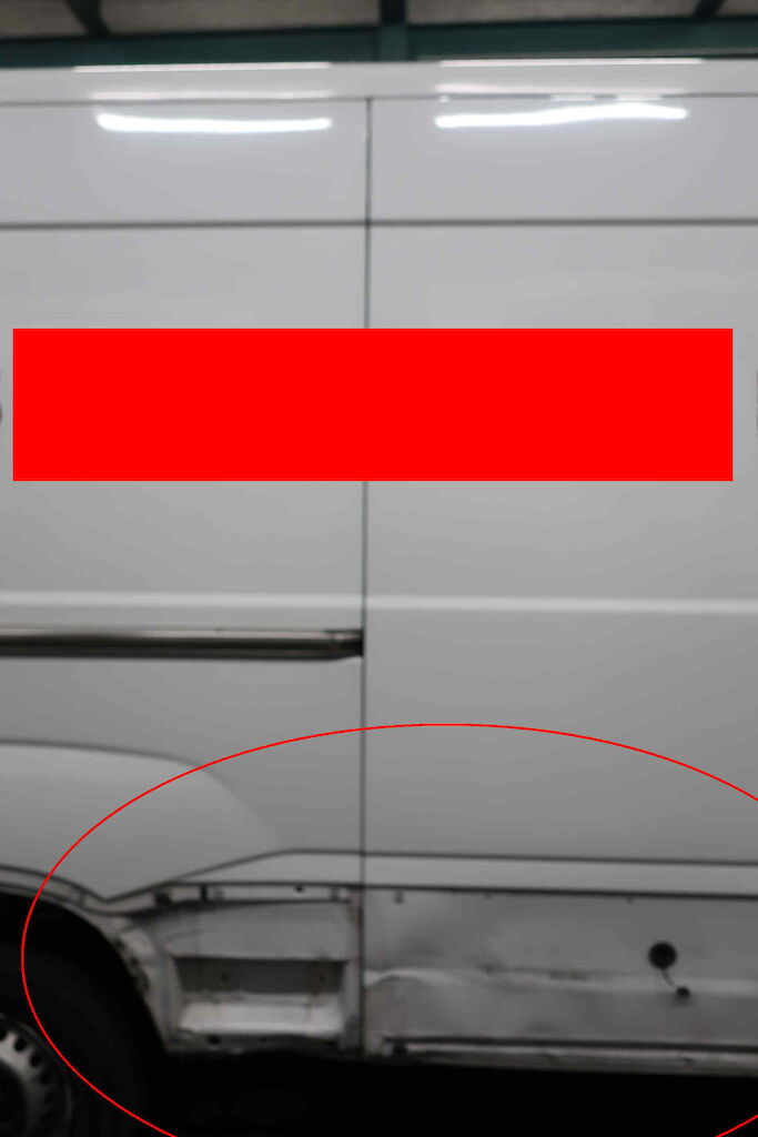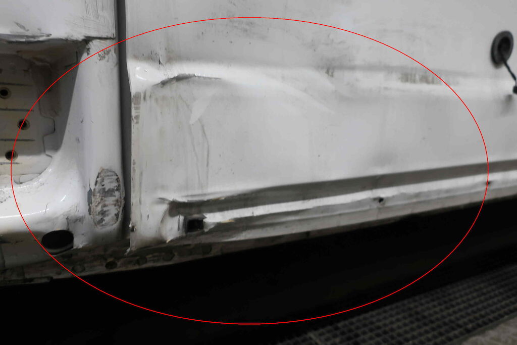 massiver Anprall rechte Seite: Stossstange, Vorderachse, Schiebetüre, Seitenwand, Hinterrad, Chassis