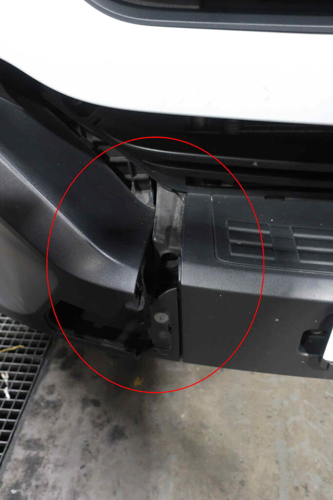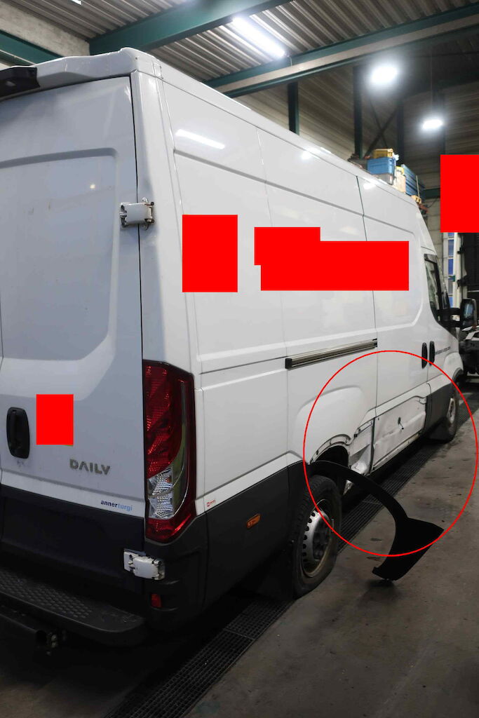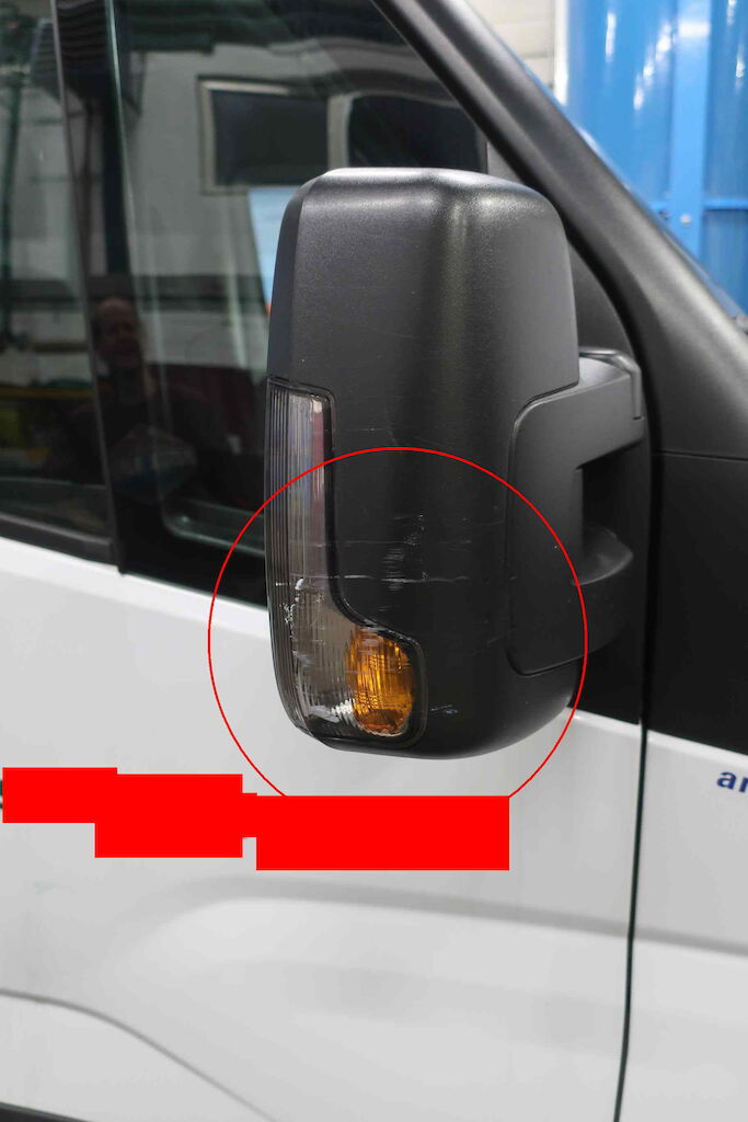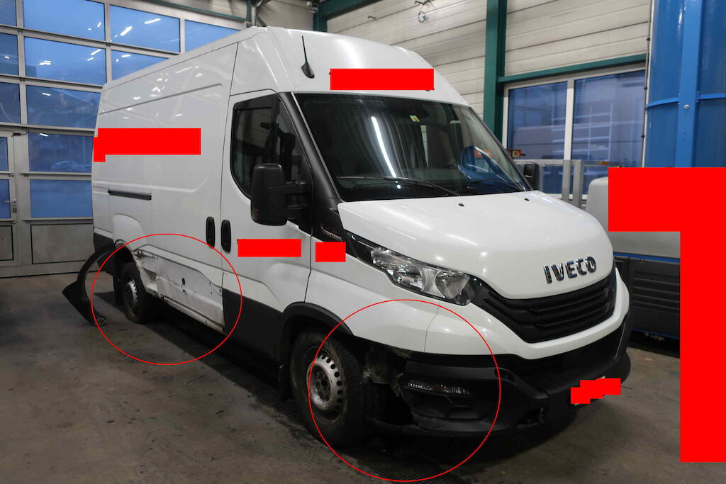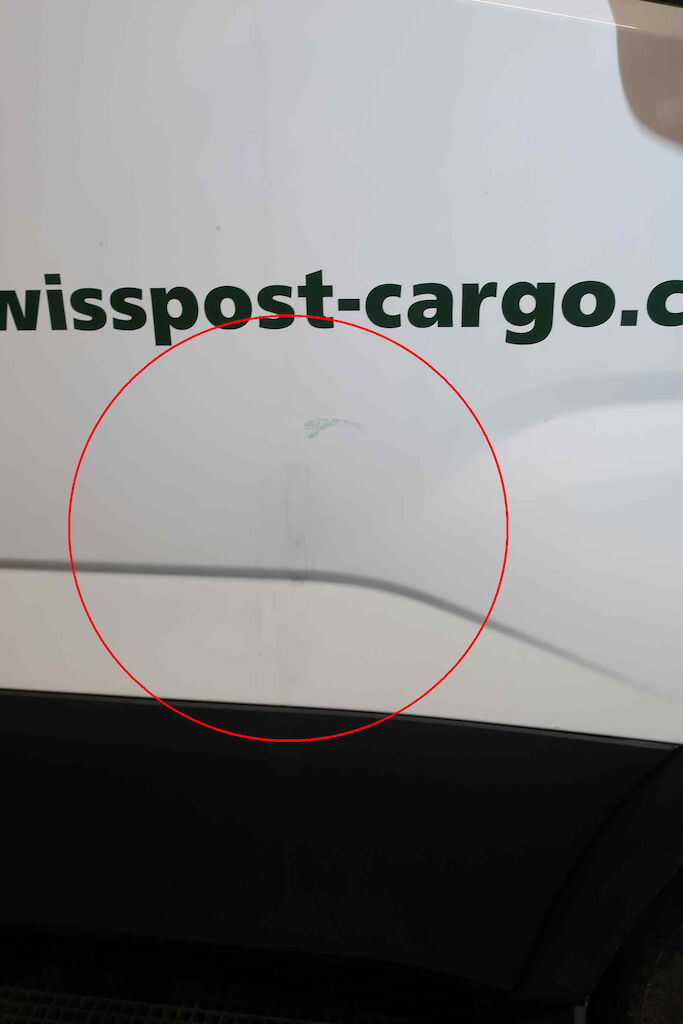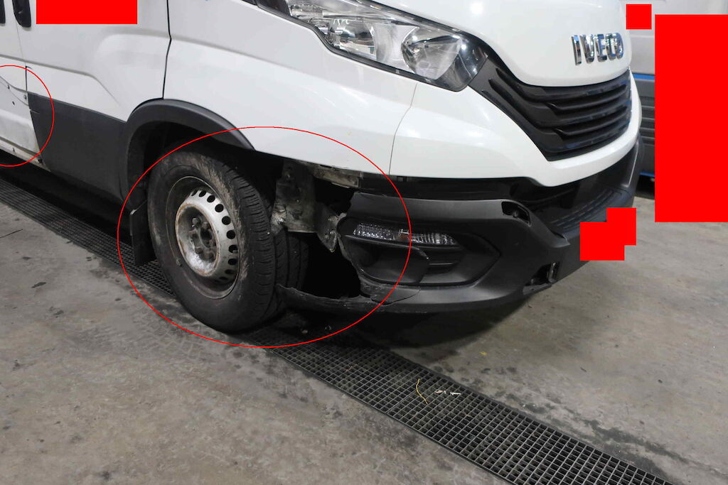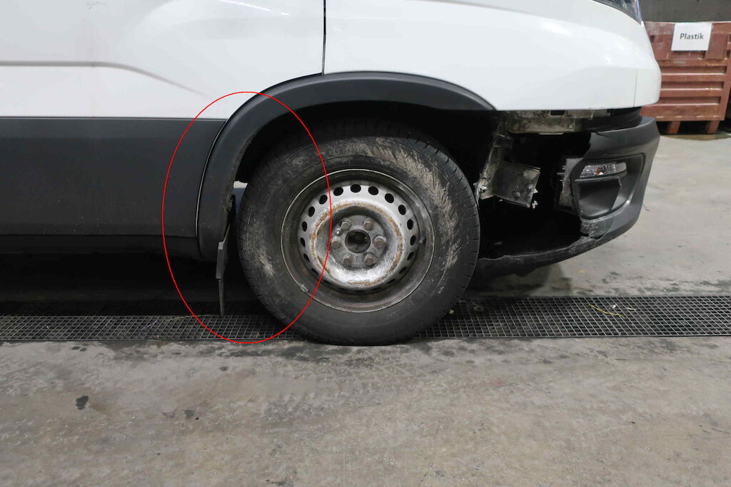 massiver Anprall rechte Seite: Stossstange, Vorderachse, Schiebetüre, Seitenwand, Hinterrad, Chassis
