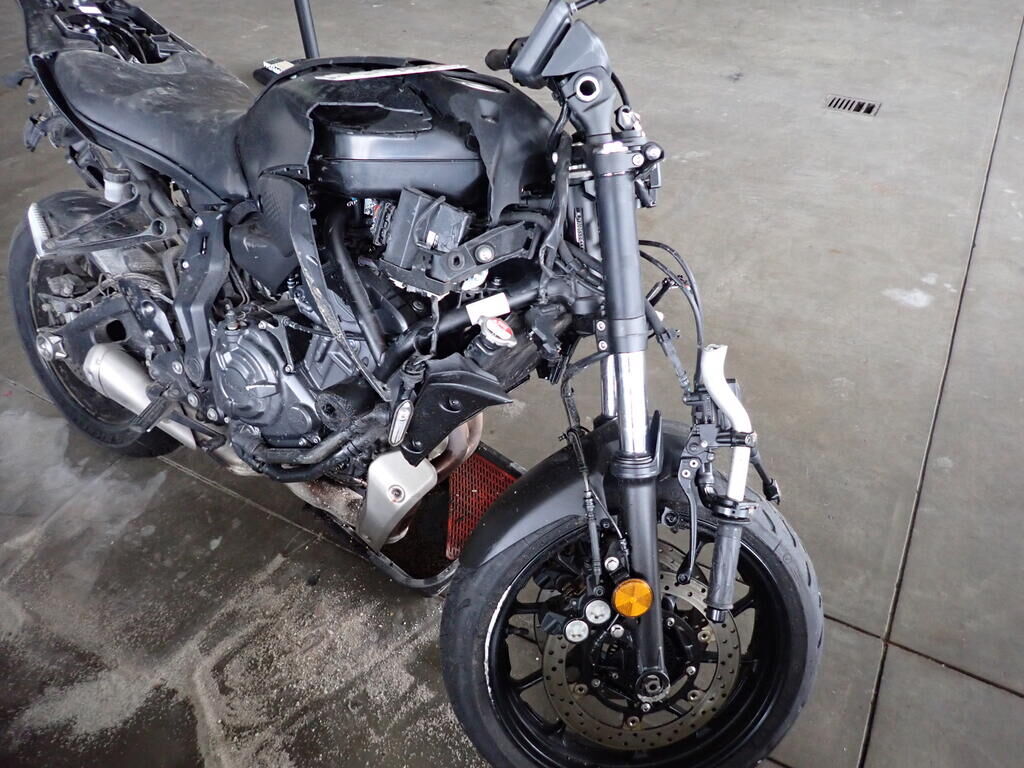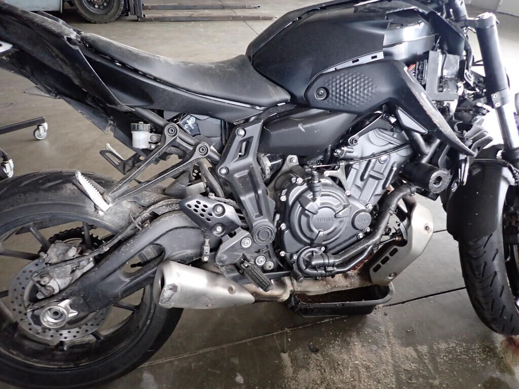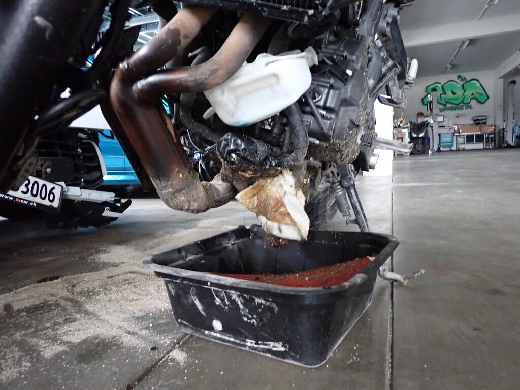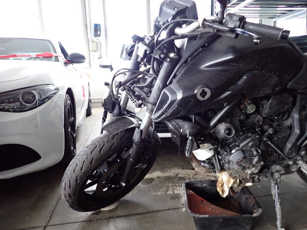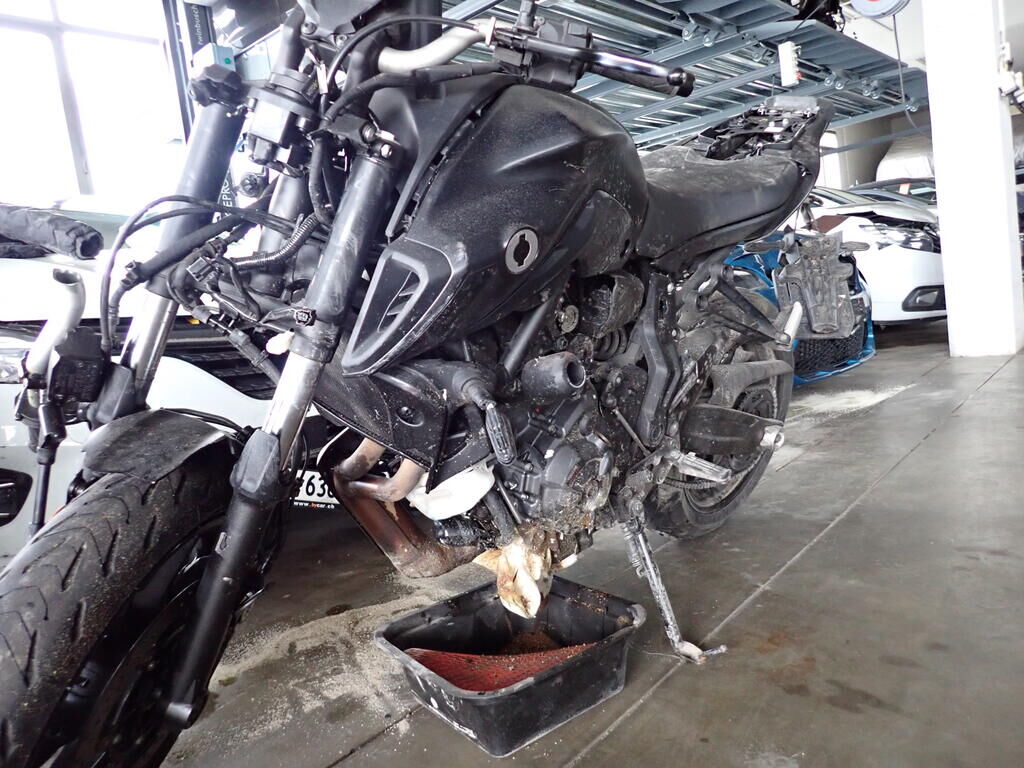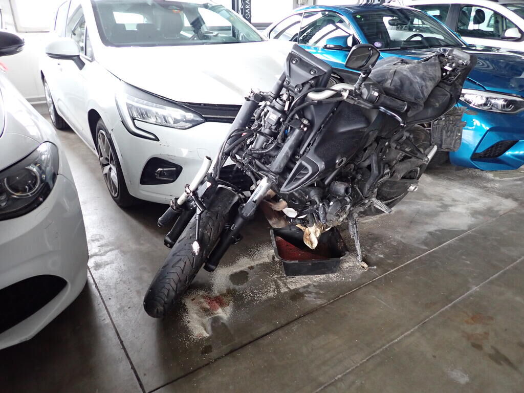 Côté gauche et droit, fourche, réservoir de carburant, bras oscillant, endommagés. Cadre arrière déformé. Echappement plié. Dommage au moteur. Cadre voilé, endommagé. Risques sur la boîte de vitesses, les boîtiers de commandes. Compteurs endommagés. Le véhicule doit être transporté.