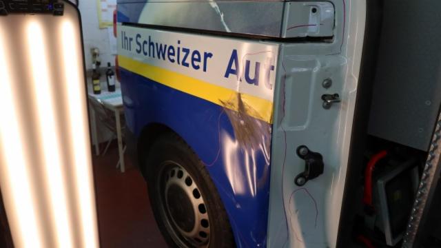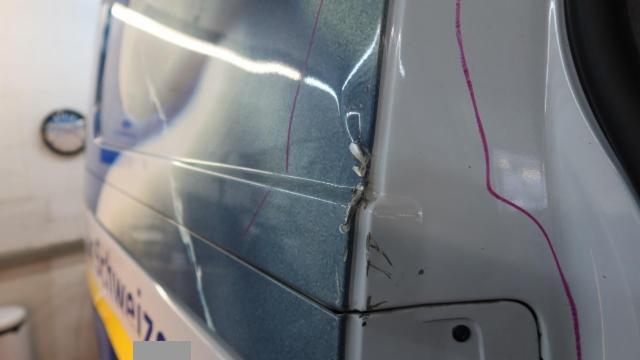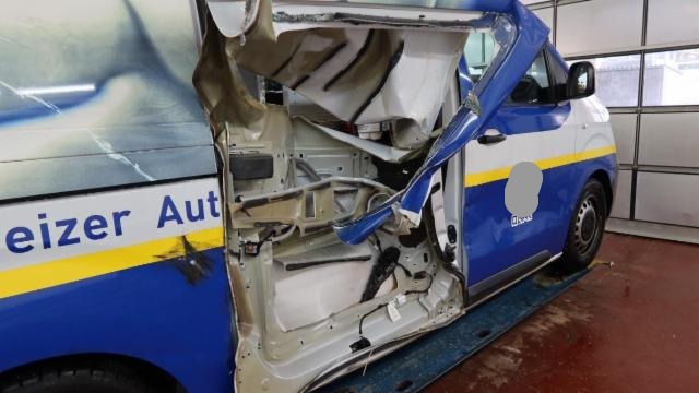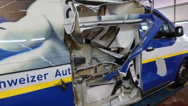 Beschädigungen Rechts Rechte Seite beschädigt. Anstoss rechts im Bereich der B-Säule. Anstoss rechts im Bereich der C-Säule. Bodengruppe rechts ist eingedrückt. Tür vorne rechts ist eingedrückt. Tür hinten rechts ist eingedrückt. Weitere Beschädigungen |