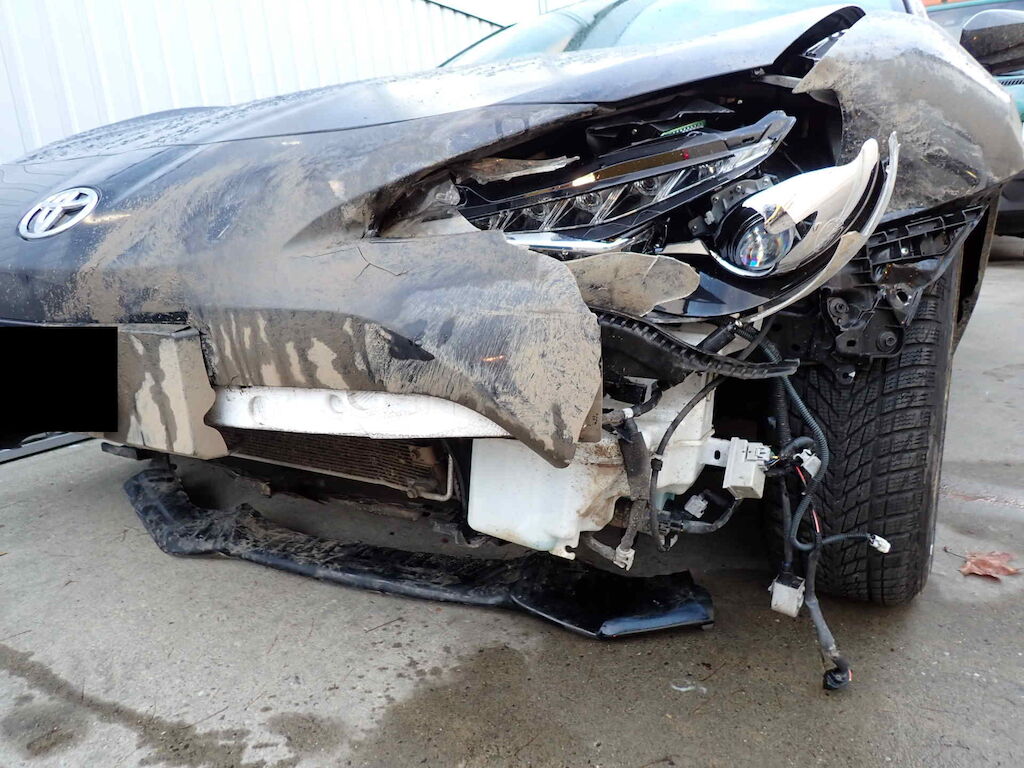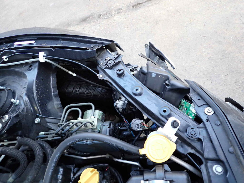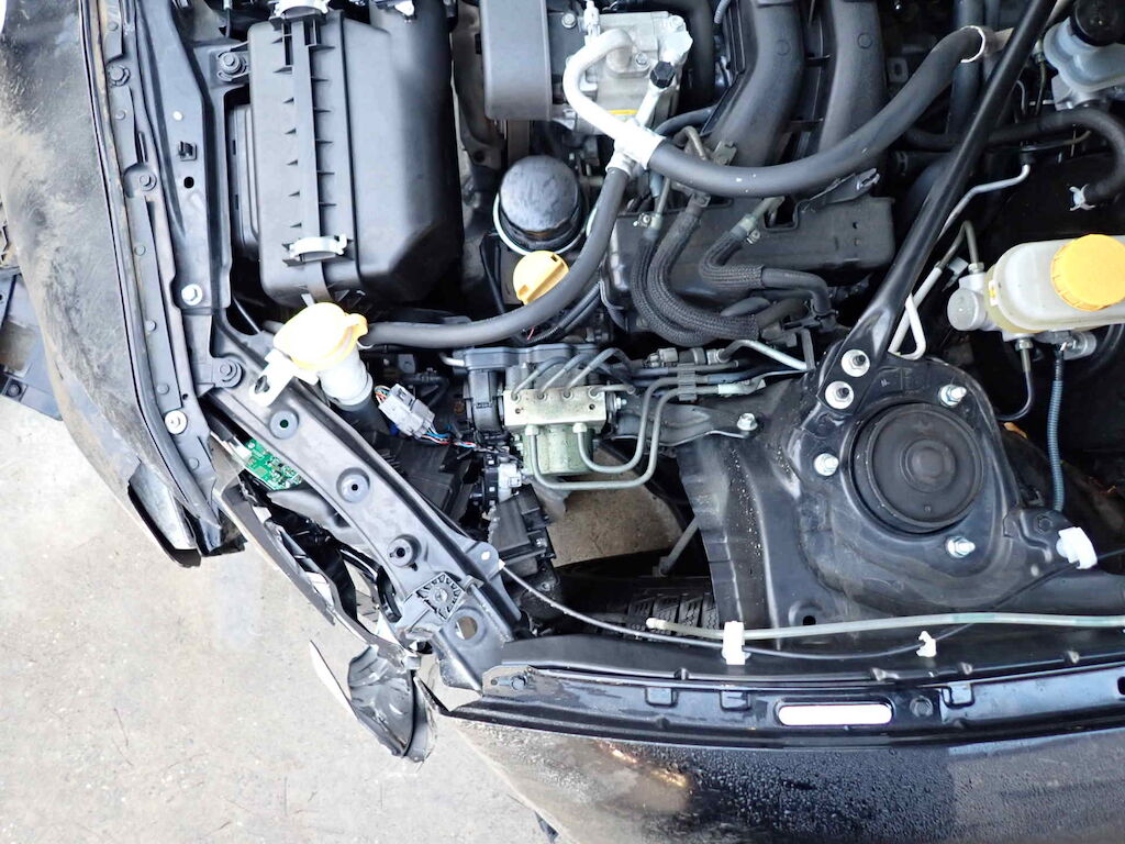 | Pare-chocs AV, phare AVG, aile AVG, capot moteur et radiateurs endommagés