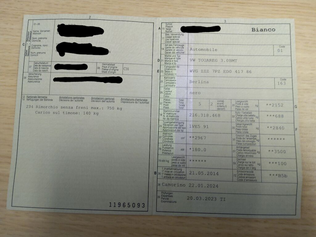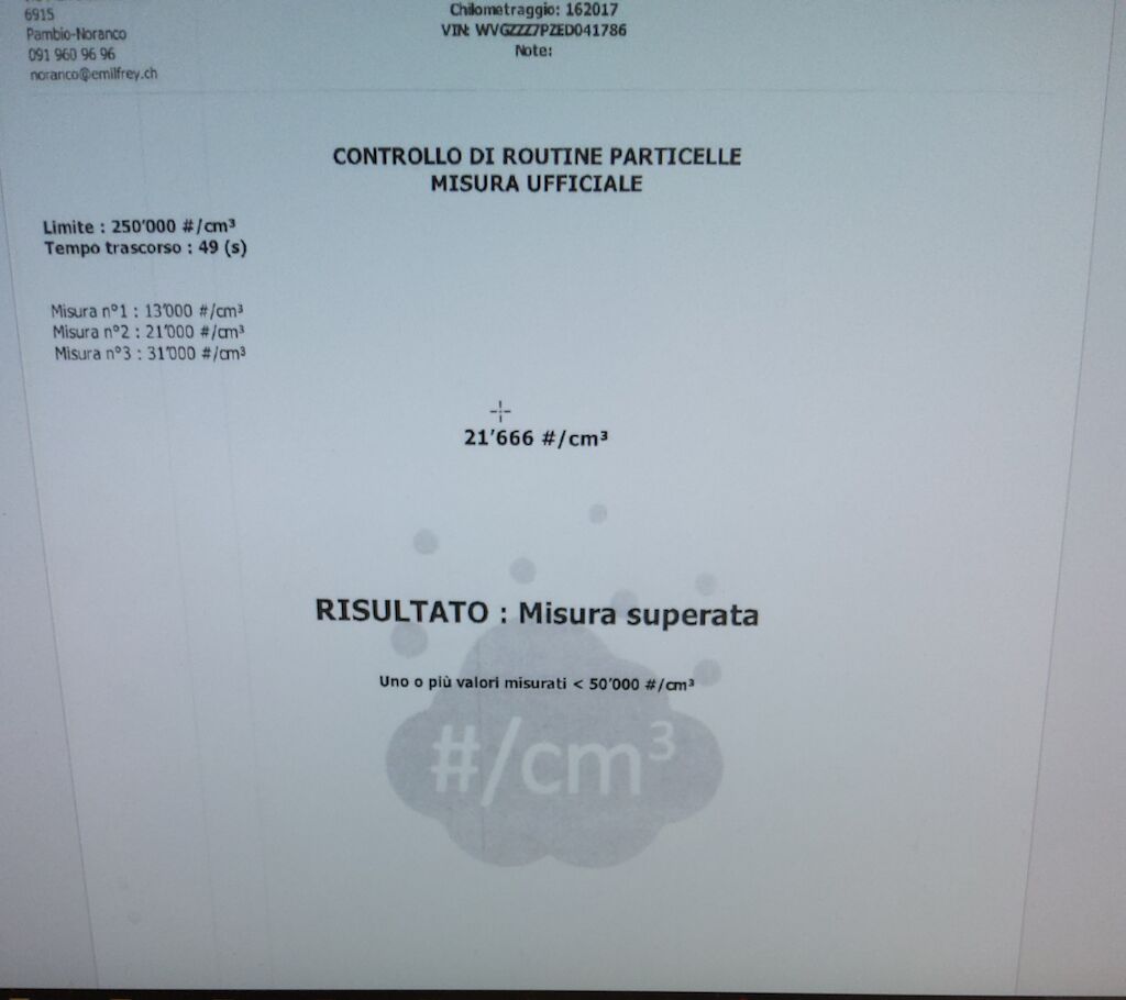 Non è stata effettuata alcuna ispezione tecnica (prova in officina)