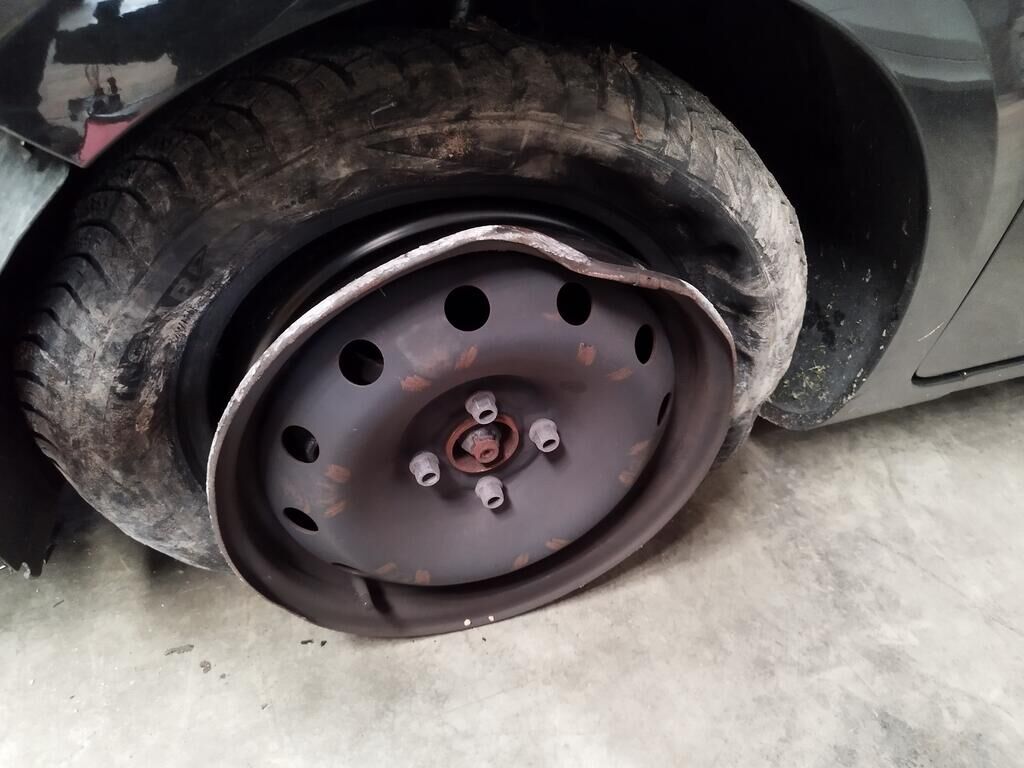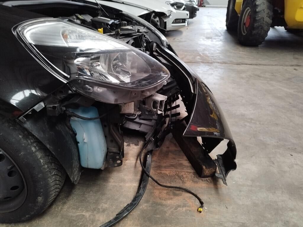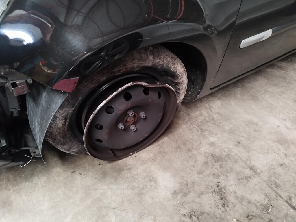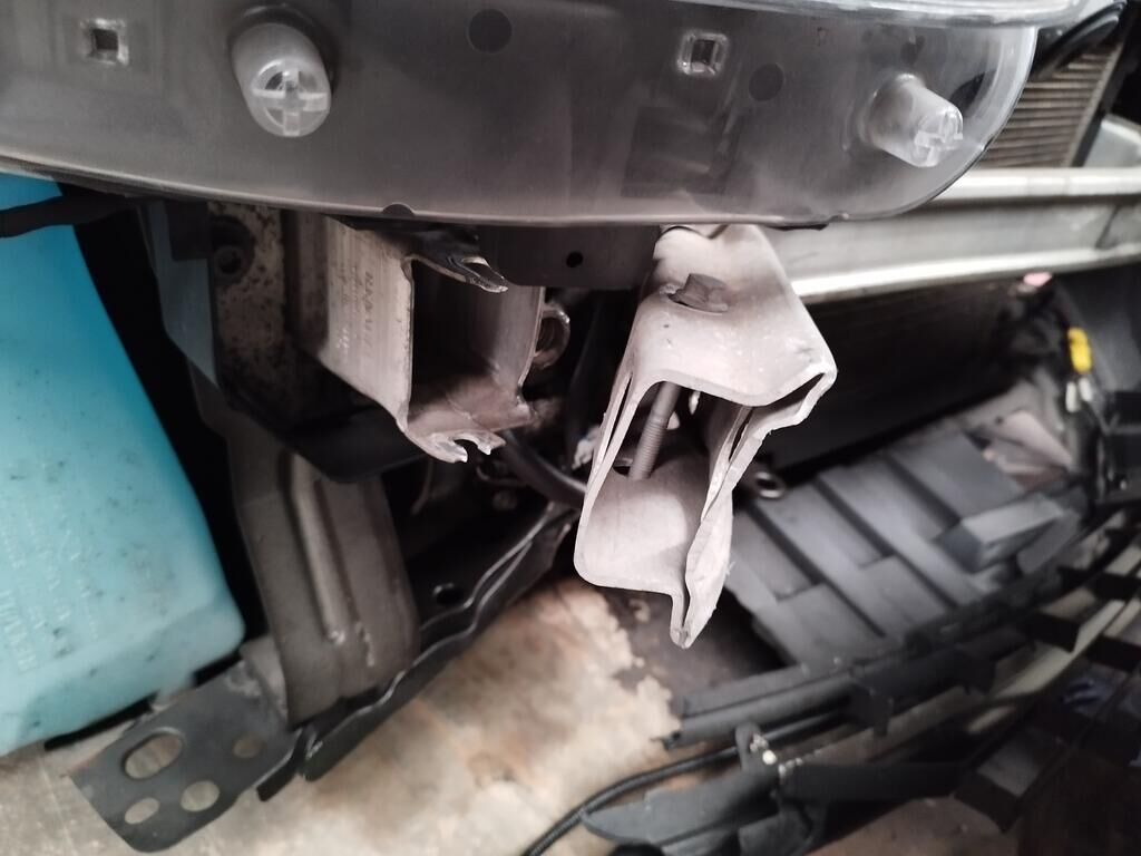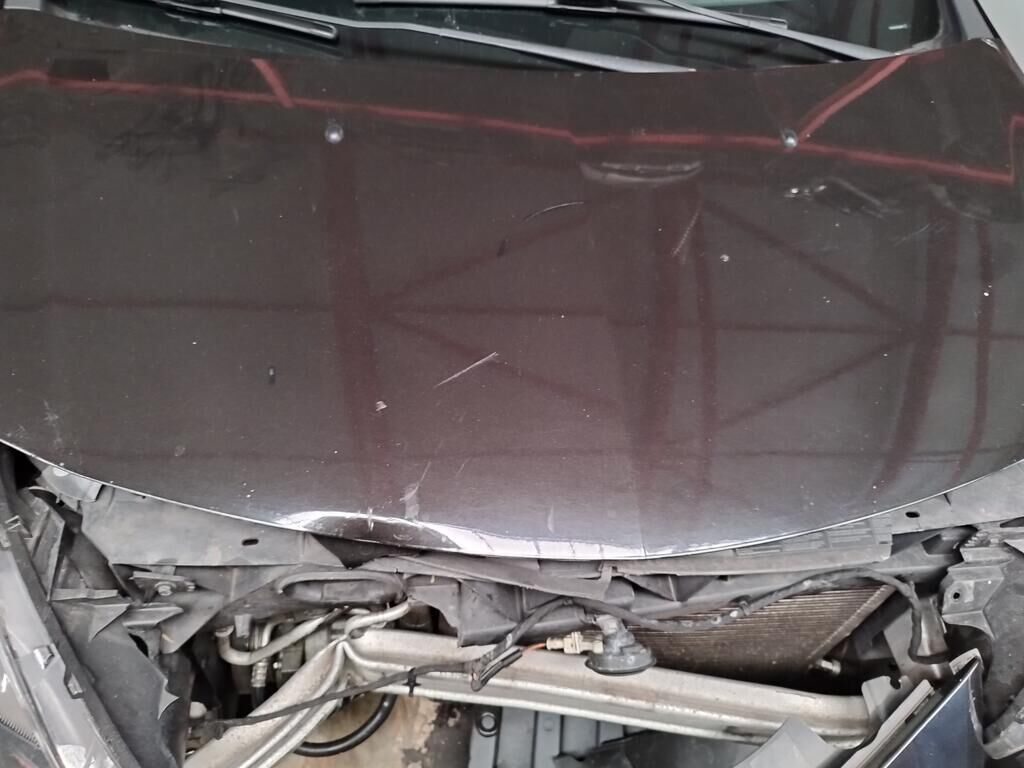 Die ganze Front ist deformiert, die Motorhaube hat eine Delle, der Scheinwerfer vorne rechts ist gerissen, alle Kühler sind deformiert, diverse Leitungen der Klimaanlage sind deformiert und verbogen, der Alternator ist gerissen.