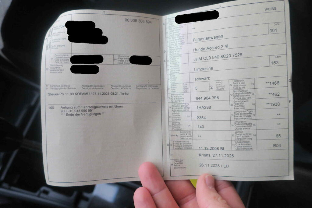 CH-Typengenehmigung Achtung: Schaltknauf auf dem Foto wird noch ersetzt mit dem Originalschaltknauf. |