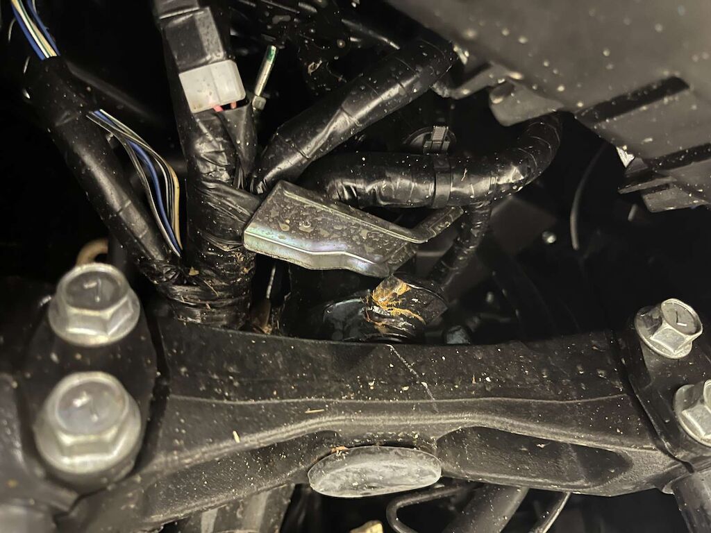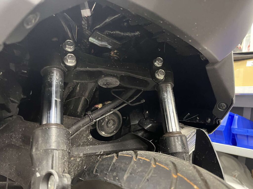 Fourche avant, guidon, cadre endommagés.