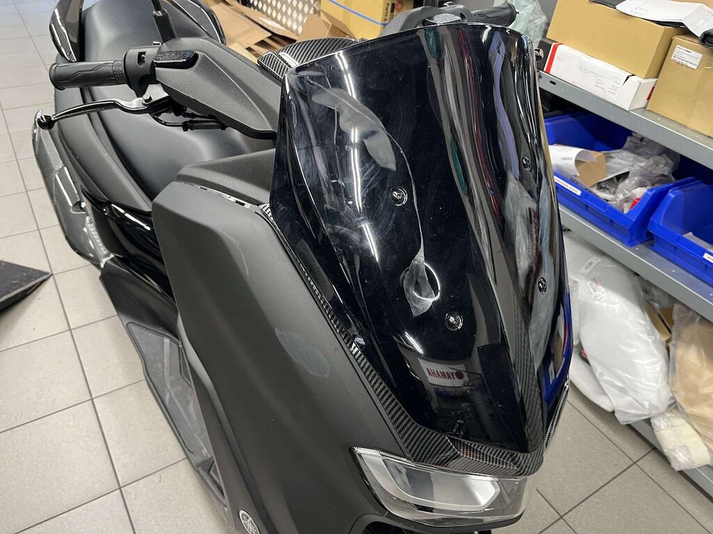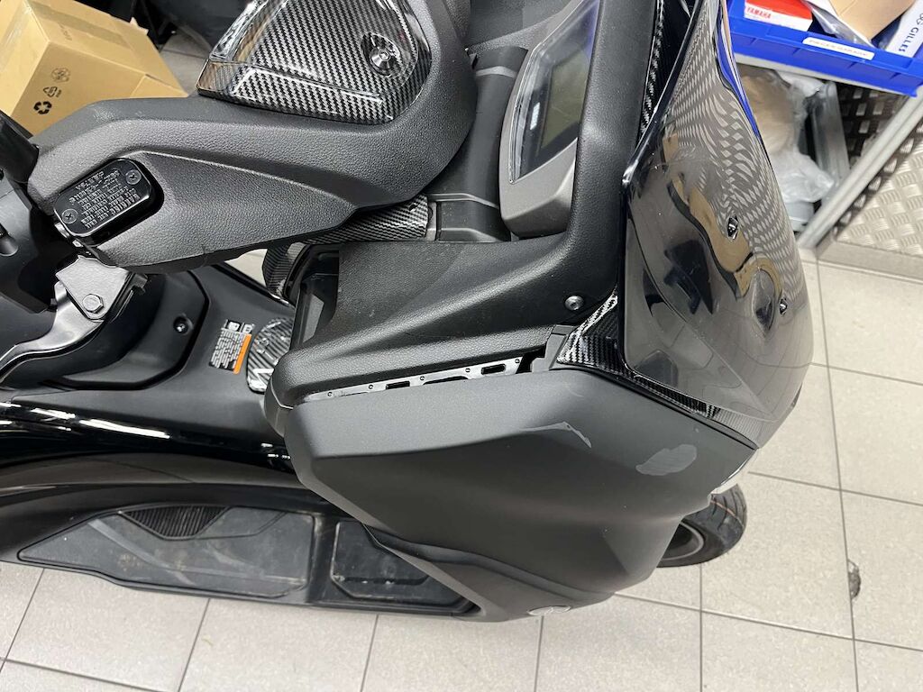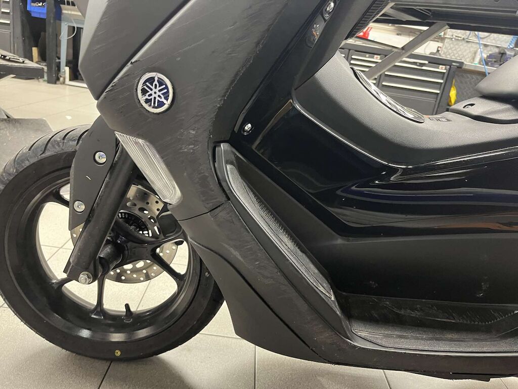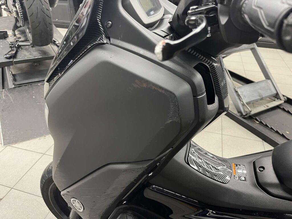 Pare-boue avant, Pare-brise, carénages avant gauche et droite, carénages latéraux gauche, béquilles, boite à air, carter variateur, poignée passager endommagés et râpés.