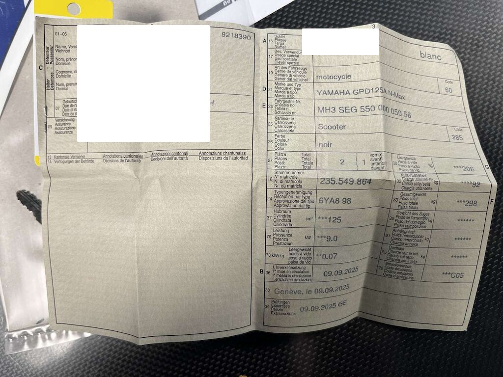 | Tipo veicolo / Costruzione / Porte | Motoveicolo / Scooter / 0 |