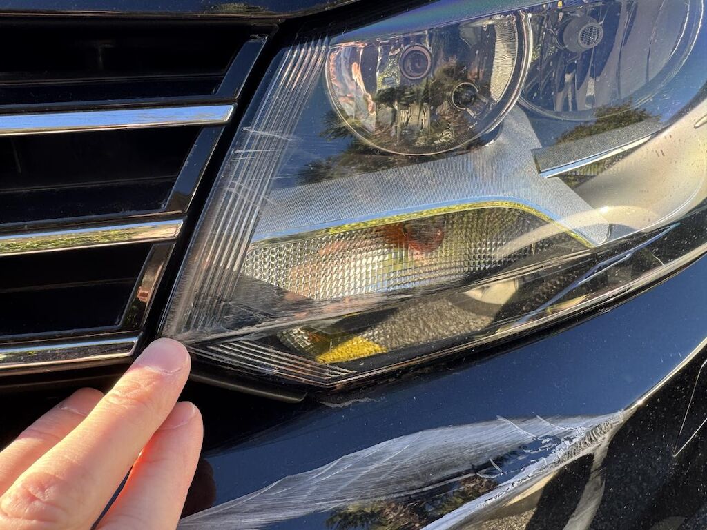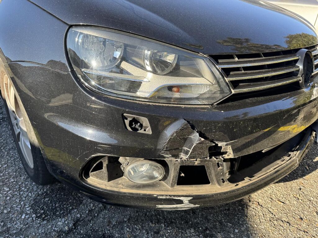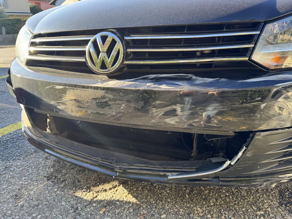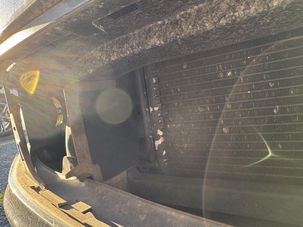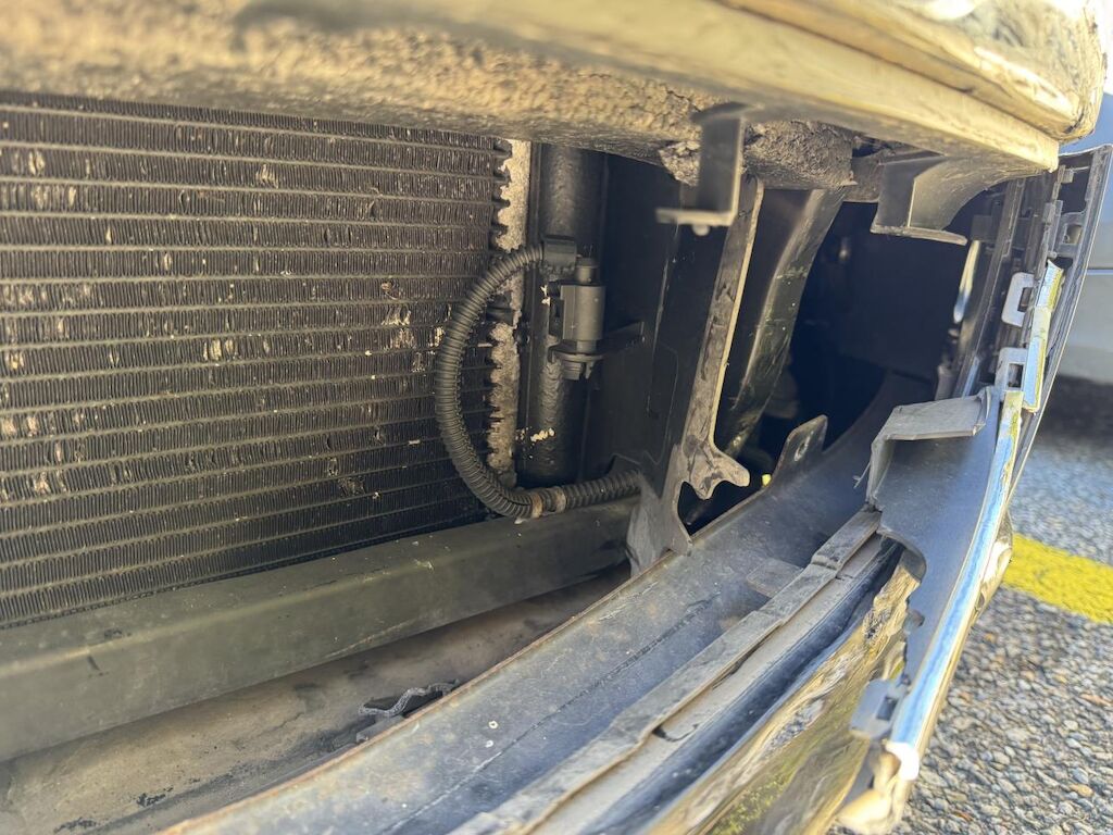 Urto parte anteriore: paraurti, griglie, mascherine, faro sinistro, supporti, traversa e altri componenti danneggiati. Radiatori a rischio.