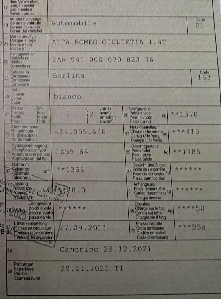 Non è stata effettuata alcuna ispezione tecnica (prova in officina)