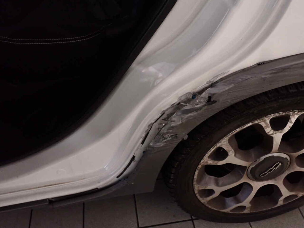 Fianco sinistro danneggiato e parte meccanica ruota anteriore sinistra