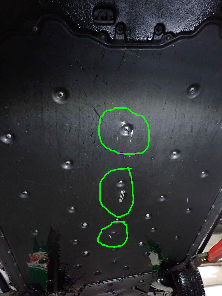 Protection sous véhicule endommagé, plaque protection batterie.