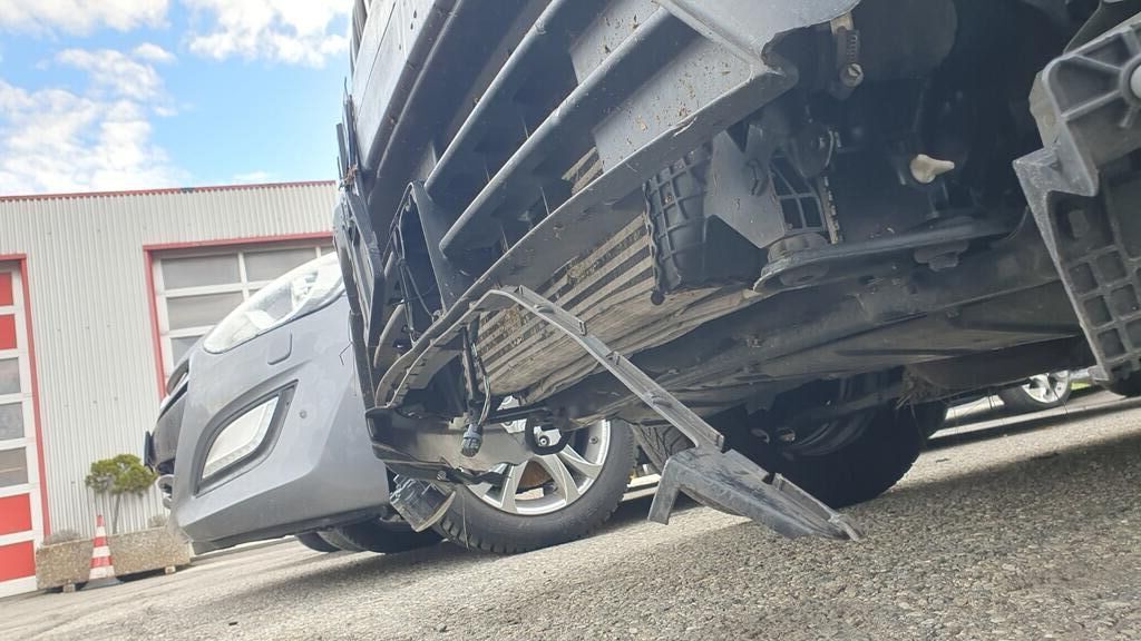 Face avant et les deux flanc endommagés et le dessous de la voiture