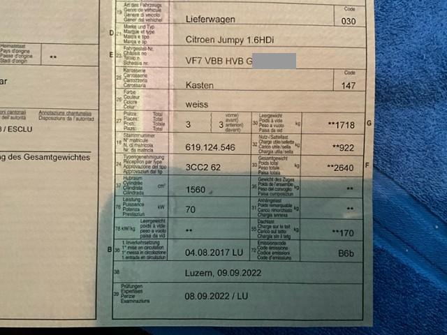 Ausstattung Serienaustattung Airbag Fahrerseite Aussenspiegel elektrisch verstellbar und beheizbar Airbag Beifahrerseite Lenkrad verstellbar 12V Steckdose Schiebetüre rechts verblecht Heck-Flügeltüren verblecht ABS + Bremsassistent ESP + Antriebsschlupfregelung ASR Dieselpartikelfilter Klimaanlage manuell Pack Sicht Keine Gewähr auf die Angaben der Serienausstattungen Audio System MP3 Pack Moduwork Pack Elektrik Sonderausstattung Sonstige Ausstattung und Zubehör |
